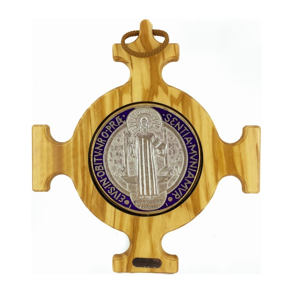 Croce di San Benedetto in legno di ulivo. Il legno di ulivo utilizzato per realizzare la St. Benedict Cross è notevole per il suo colore e la sua durata, rendendolo un'aggiunta bella e duratura a qualsiasi casa o ufficio.