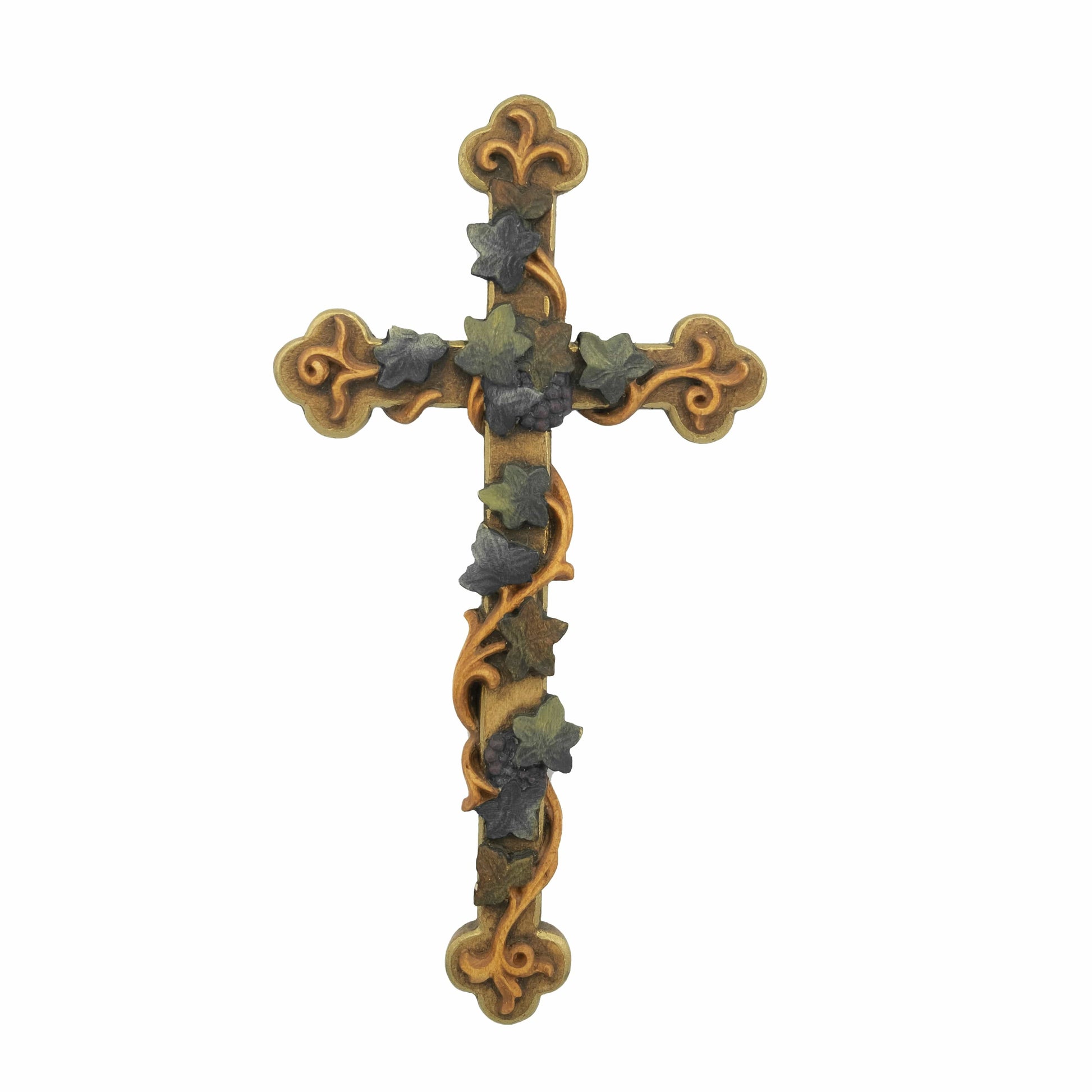 Croce in Legno Con Foglie D'uva E Tralci Di Vite