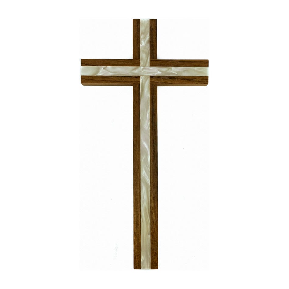 Croce in Legno Di Noce Con Intarso in Madreperla