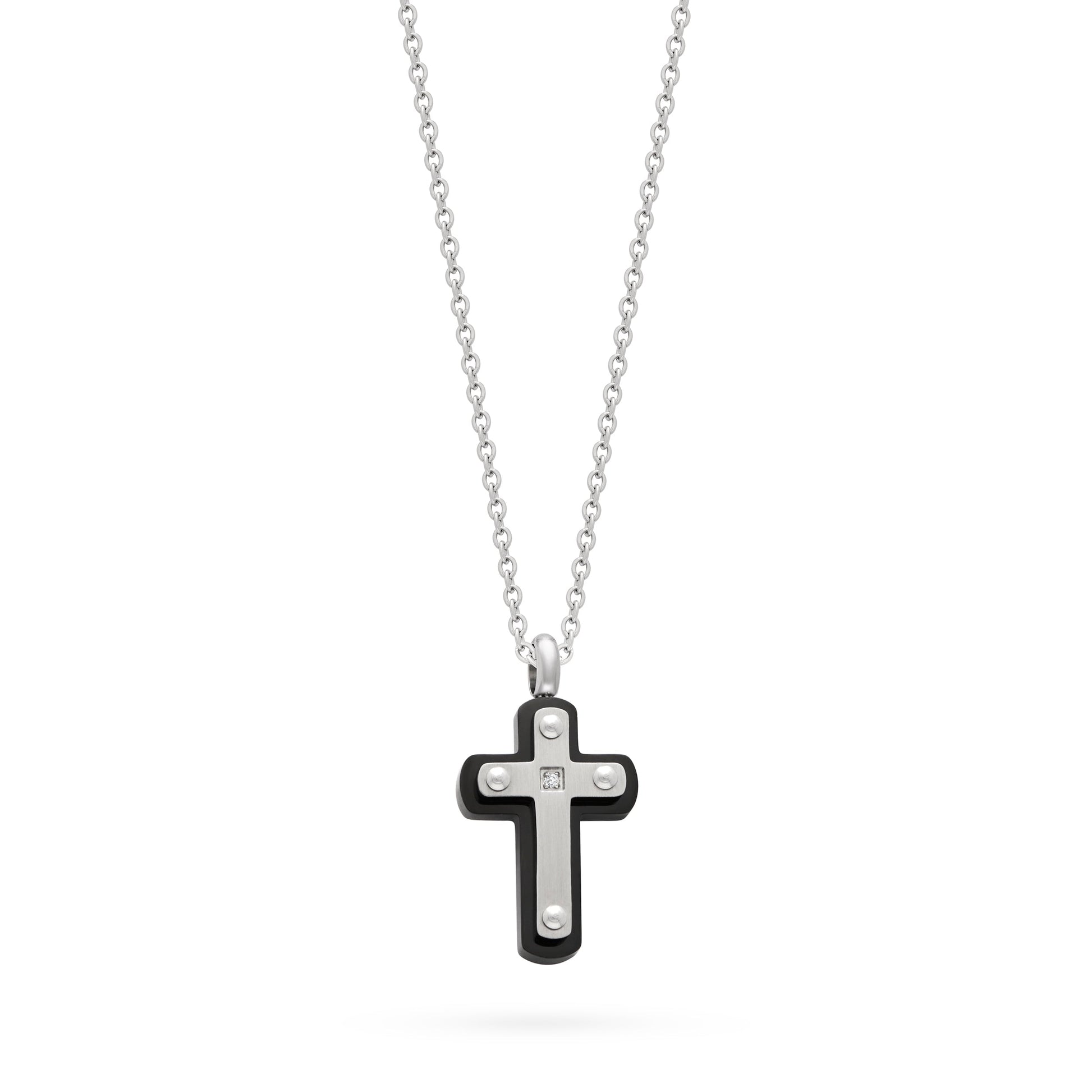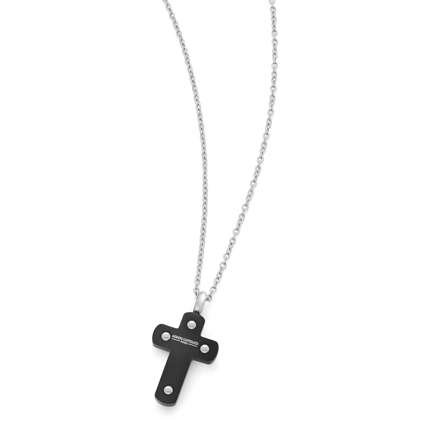 Croce Pendente in Acciaio Inossidabile con Retro Nero e Catena