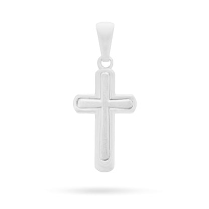 Croce Pendente in Argento 925 Con Interno Satinato e Angoli Stondati