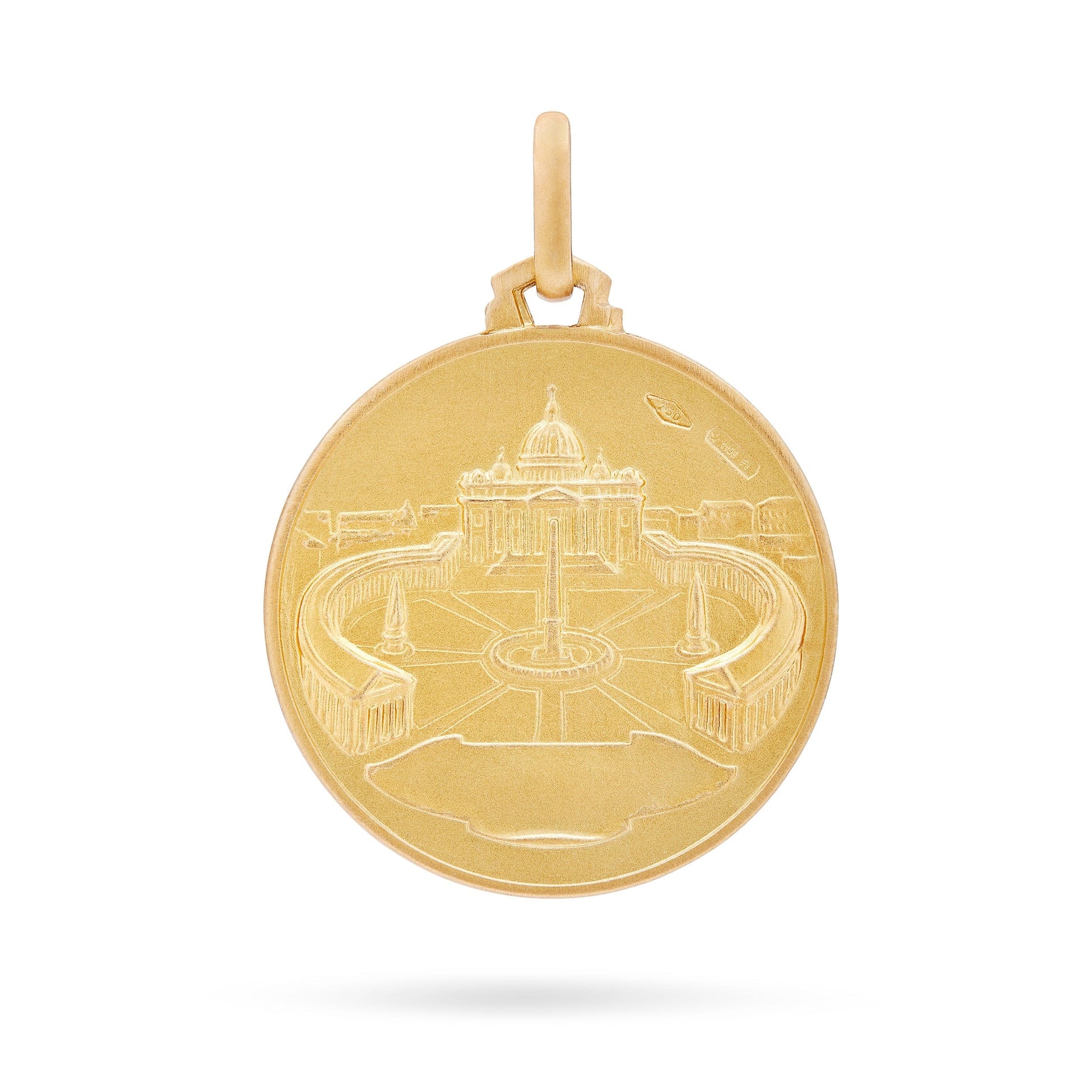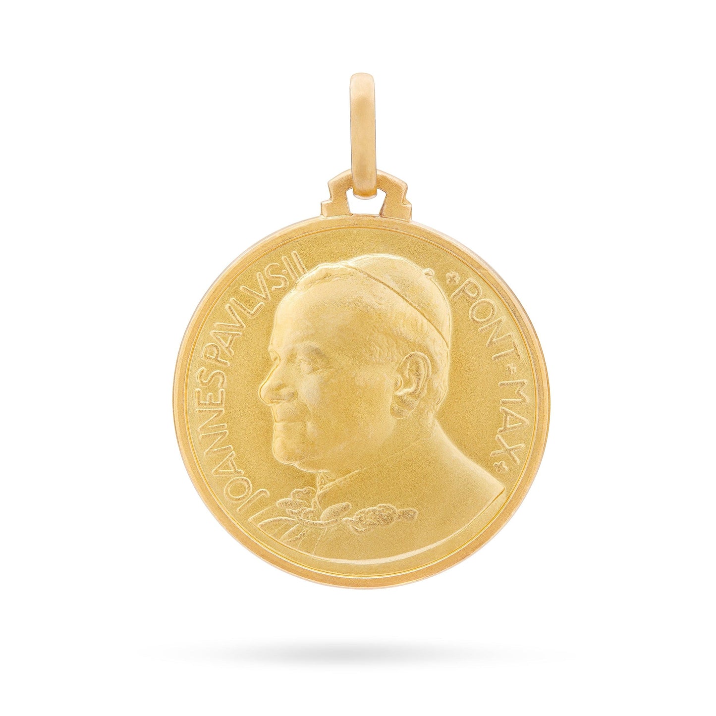 Medaglia doppia in oro 18 kt, raffigurante da un lato San Giovanni Paolo II e dall'altro lato la Basilica di San Pietro.