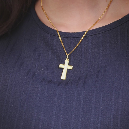 Ciondolo Croce in argento decorata con Linee, placcatura in oro 18 carati.