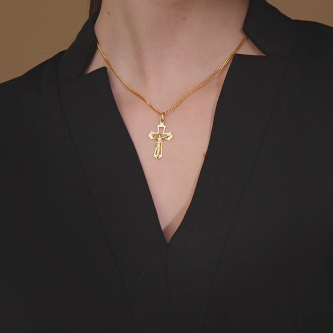 Crocifisso a Tre Punte in argento placcato in oro 18 carati.
