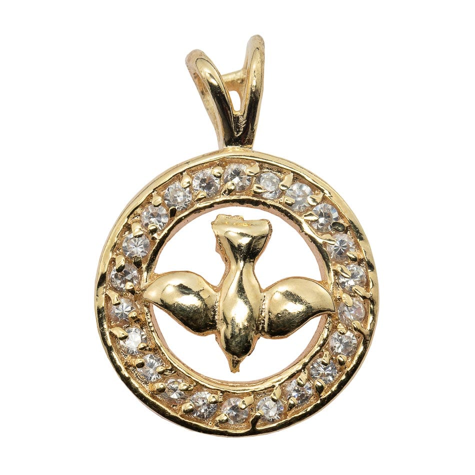 Ciondolo del Santo Spirito in metallo placcato in oro con cristalli.