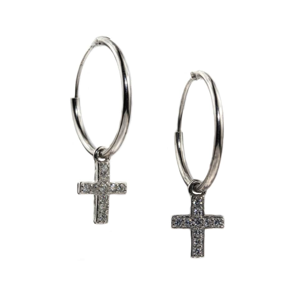 Orecchini a Cerchio in Argento con Croce di Cristalli