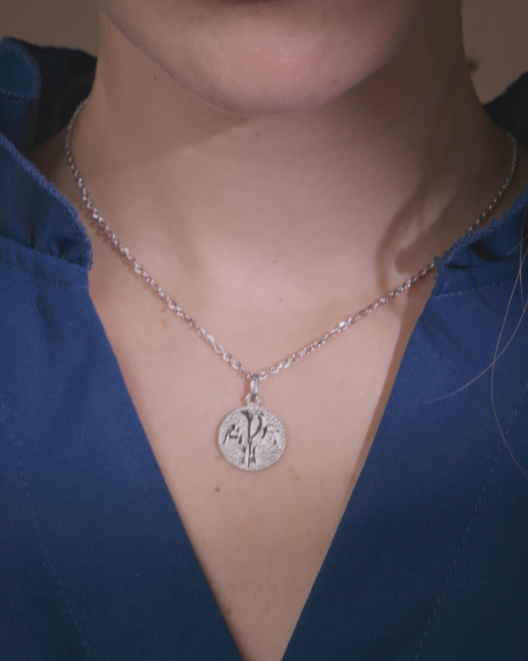 Medaglia Chi Rho in Oro Bianco Con Mater Ecclesiae Sul Retro