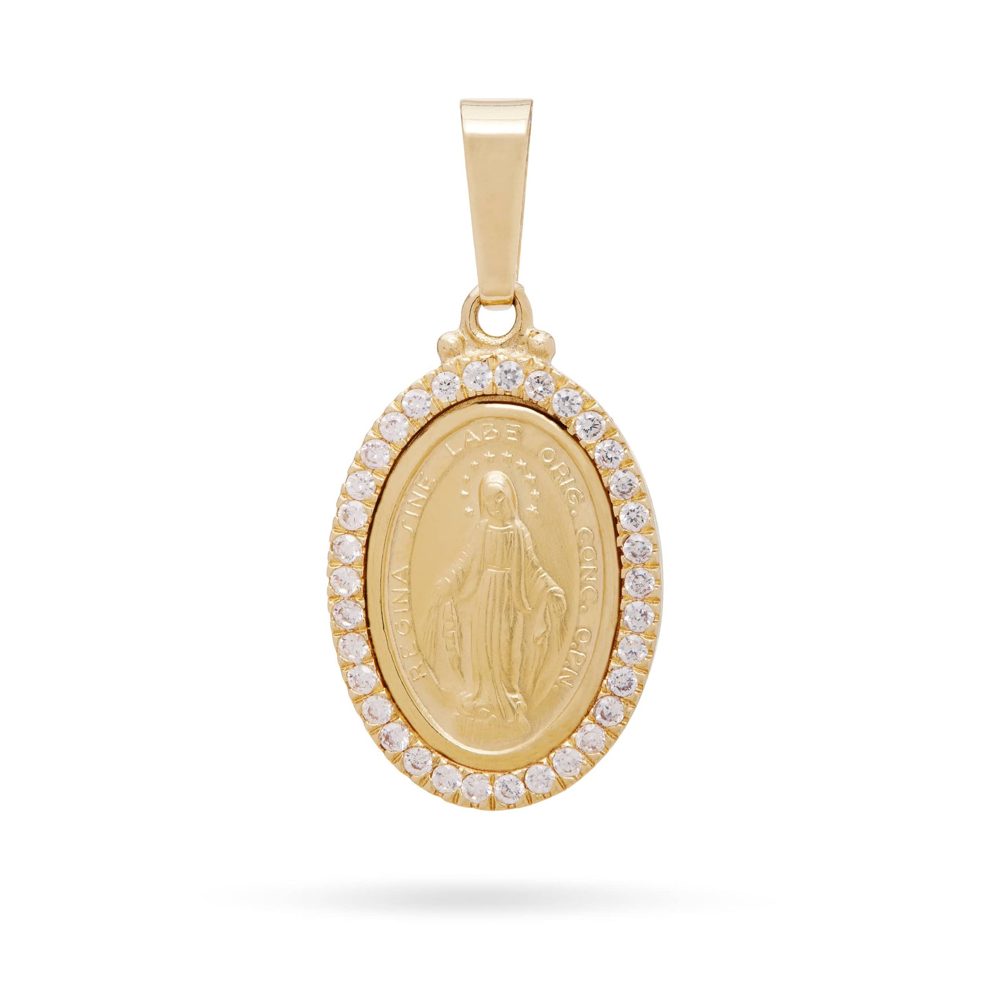 Medaglia Miracolosa Ovale in Argento Dorato con Zirconi