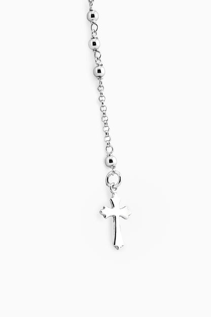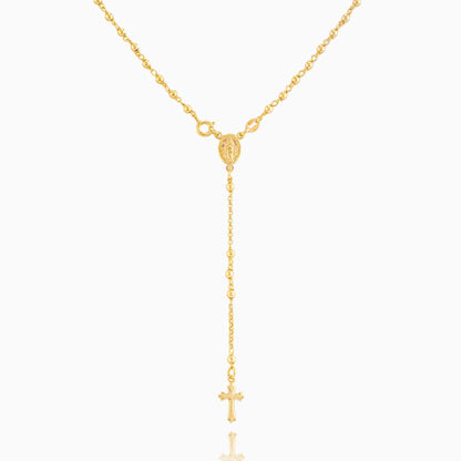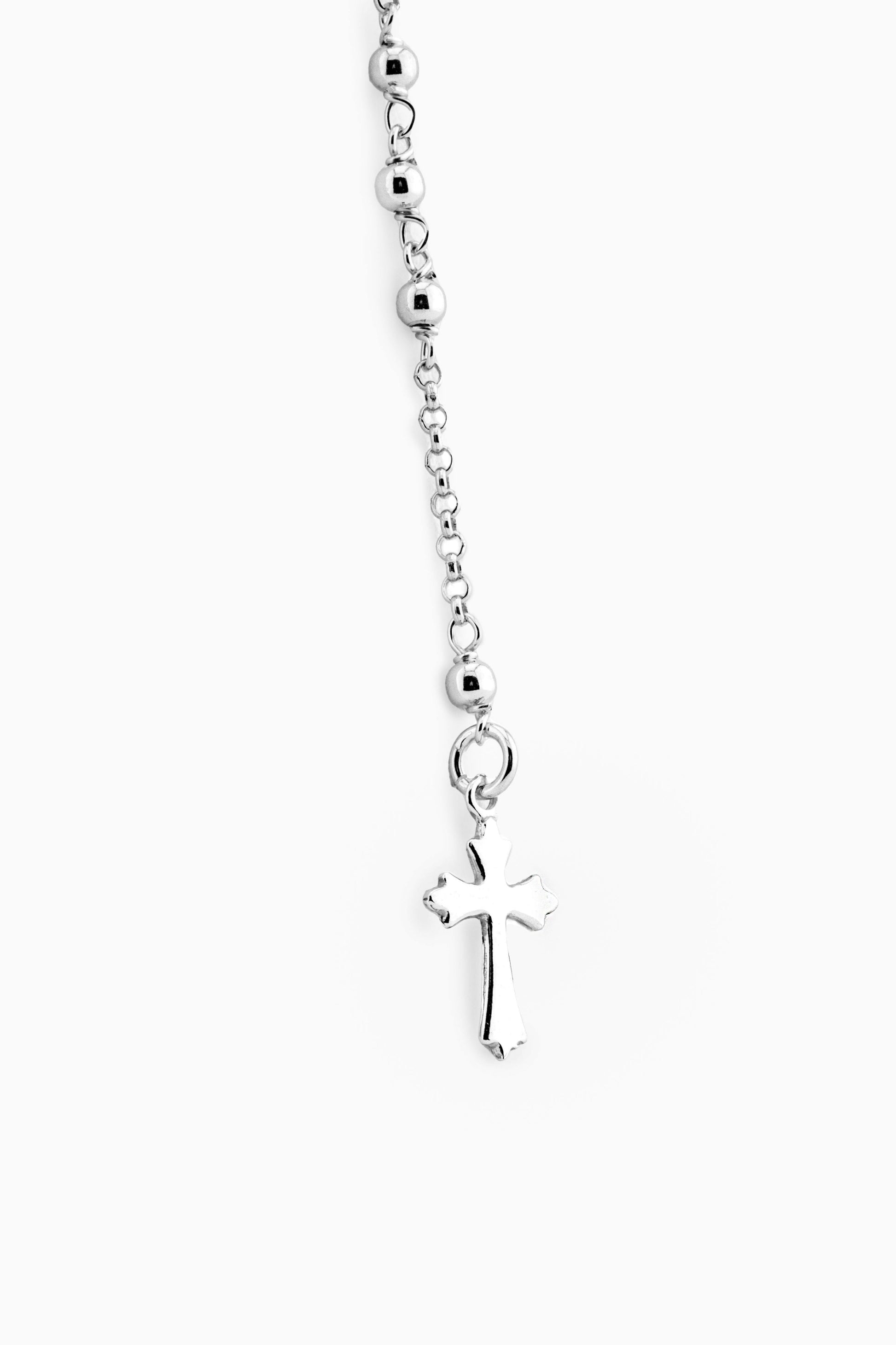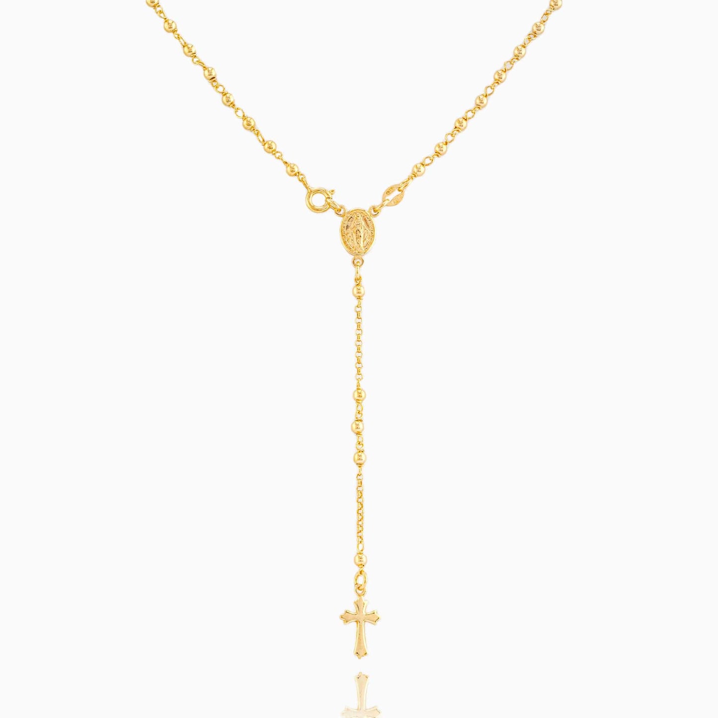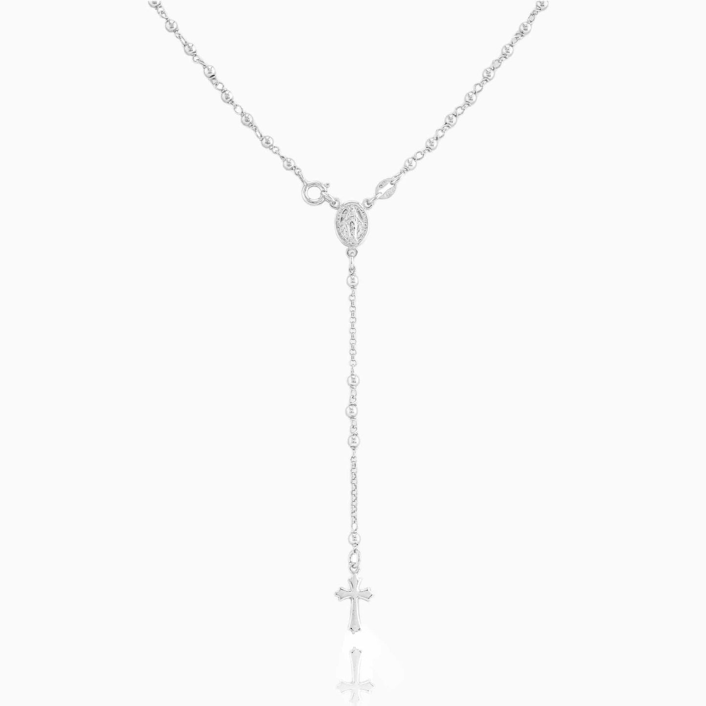 Rosario in argento 925 placcato con medaglia centrale raffigurante la Madonna dei Miracoli e croce. Questa collana si chiude con un fermaglio a moschettone e perline da 3 mm.