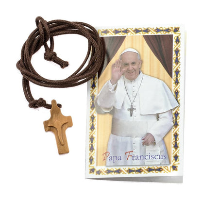Croce in Ulivo con cordoncino, immaginetta cartacea di Papa Francesco.