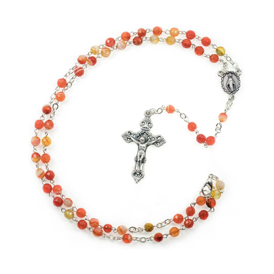 Rosario con grani in pietra dura, Agata, crociera con la Miracolosa, con chiusura, colore arancione.