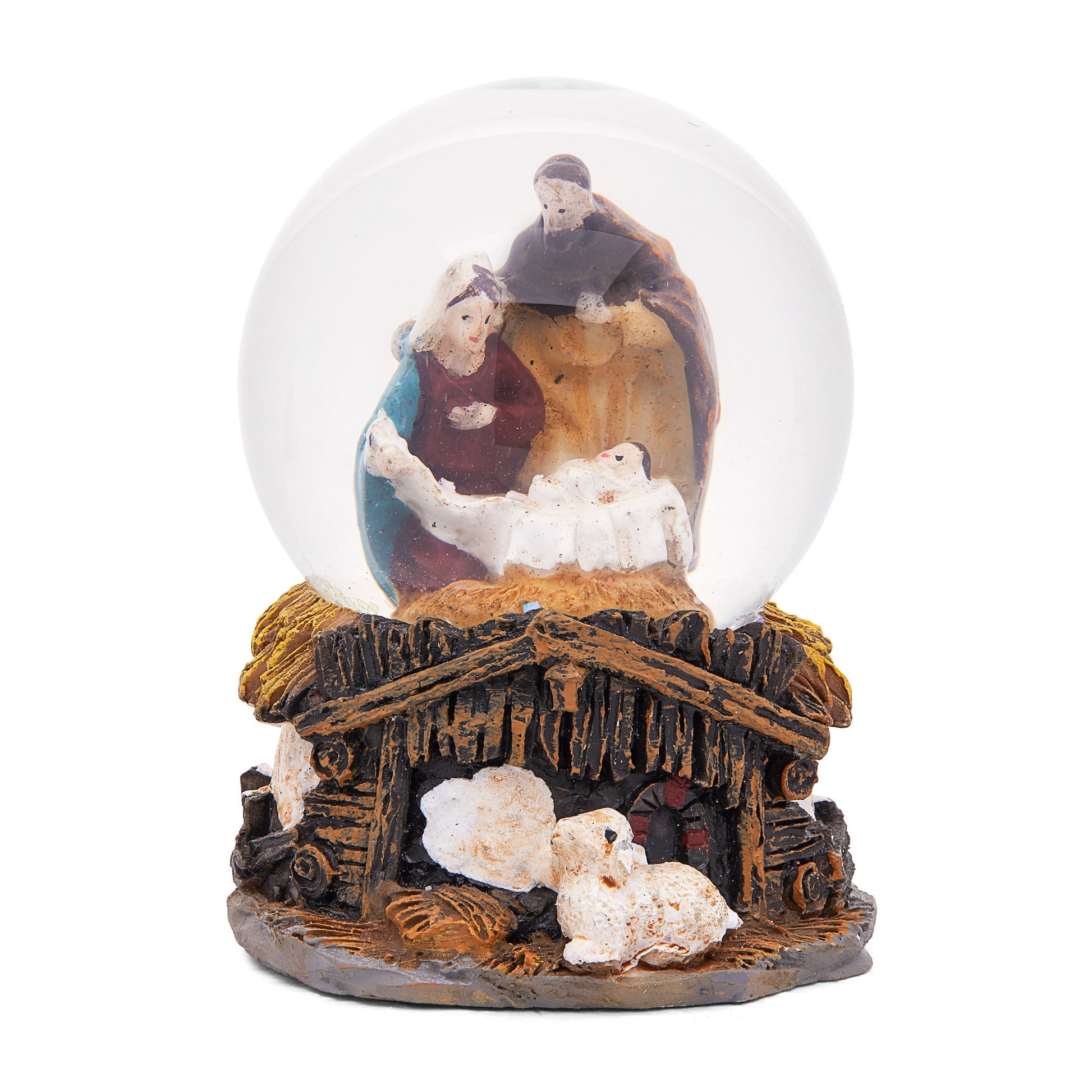 Palla Di Neve Con Presepe Su Capanna Di Resina