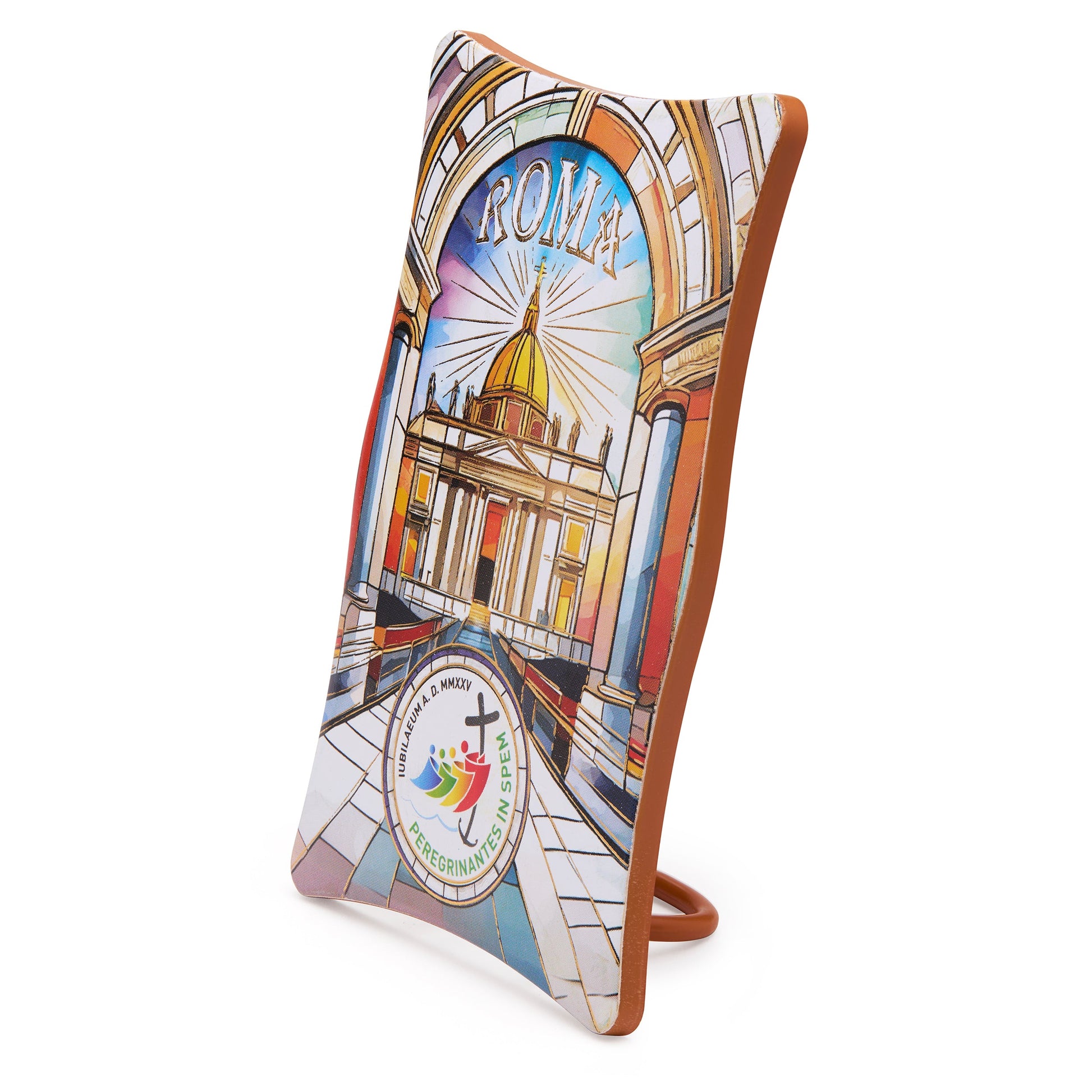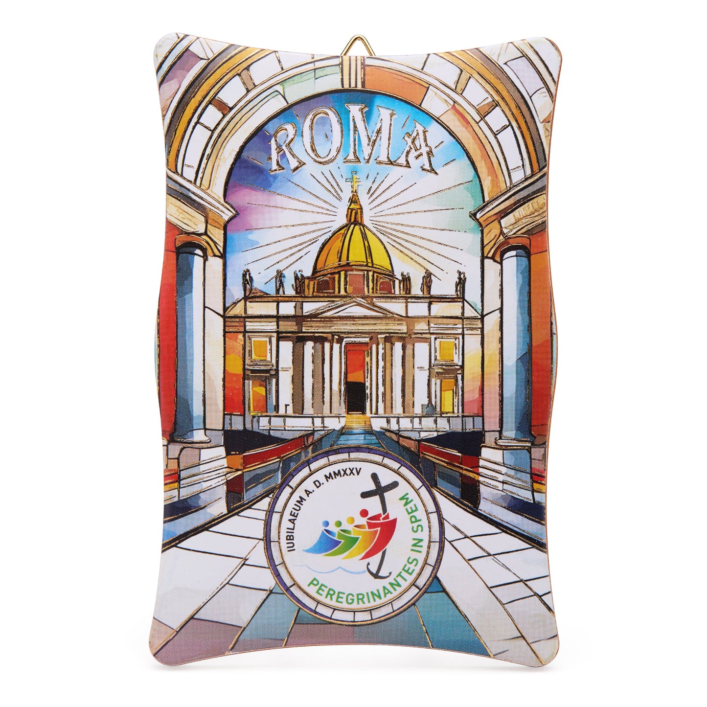 Pannello in Legno Del Giubileo 2025 con Basilica di San Pietro in Stile Mosaico