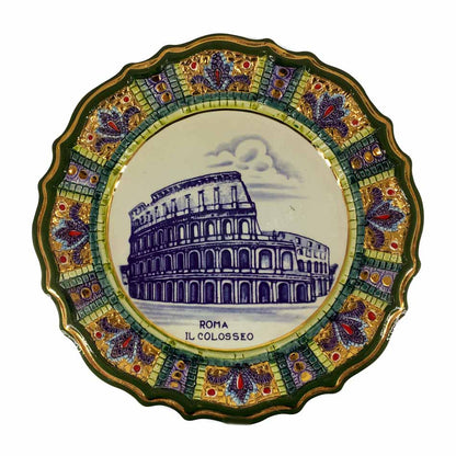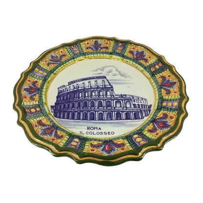 Piatto Decorativo in Ceramica Fatto a Mano Con Il Colosseo E Contorno Lavorato