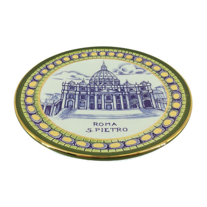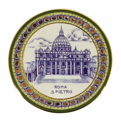 Piatto in Ceramica raffigurante la Basilica di San Pietro, completamente realizzato a mano dalla prestigiosa ditta La Pinturicchio.