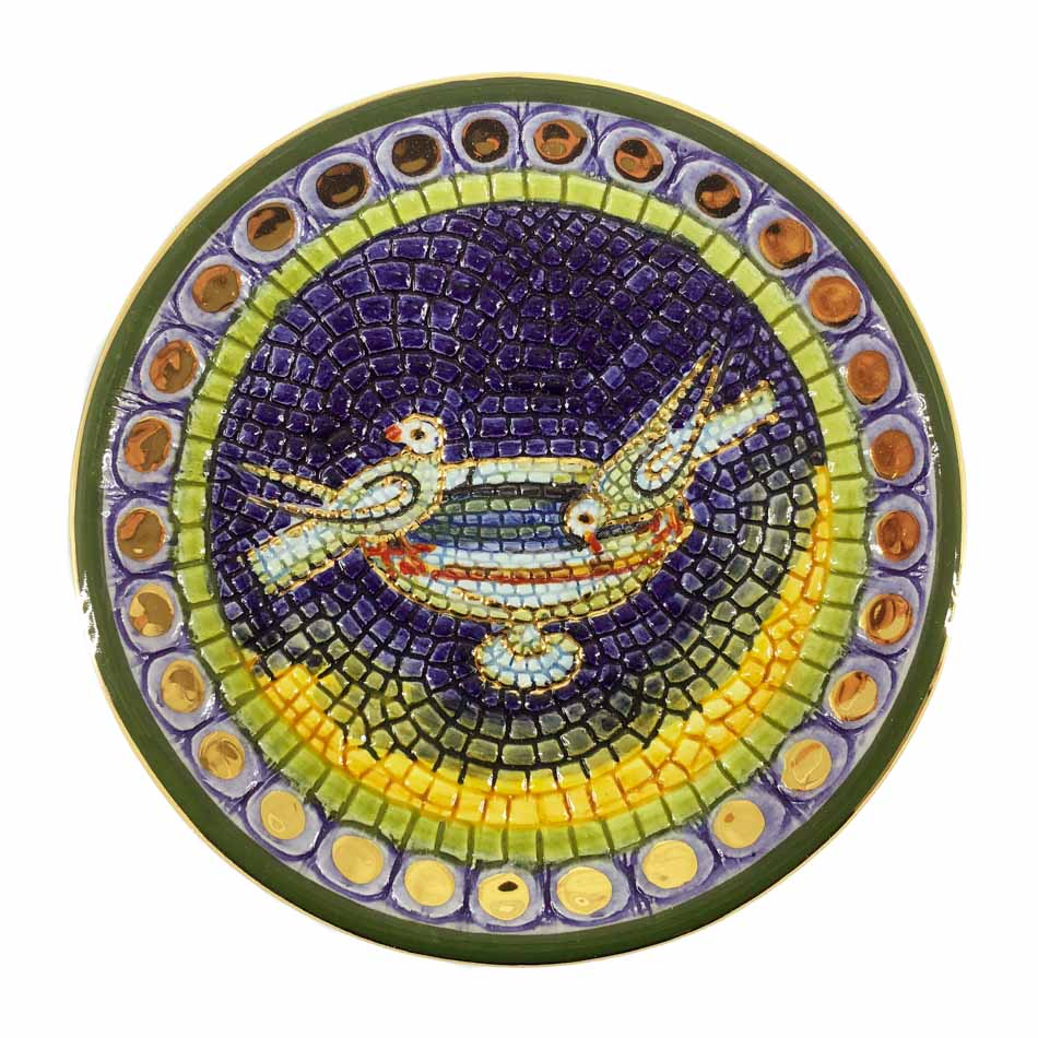 Piatto Decorativo in Ceramica Fatto a Mano Con Le Colombe Abbeveranti Di Plinio