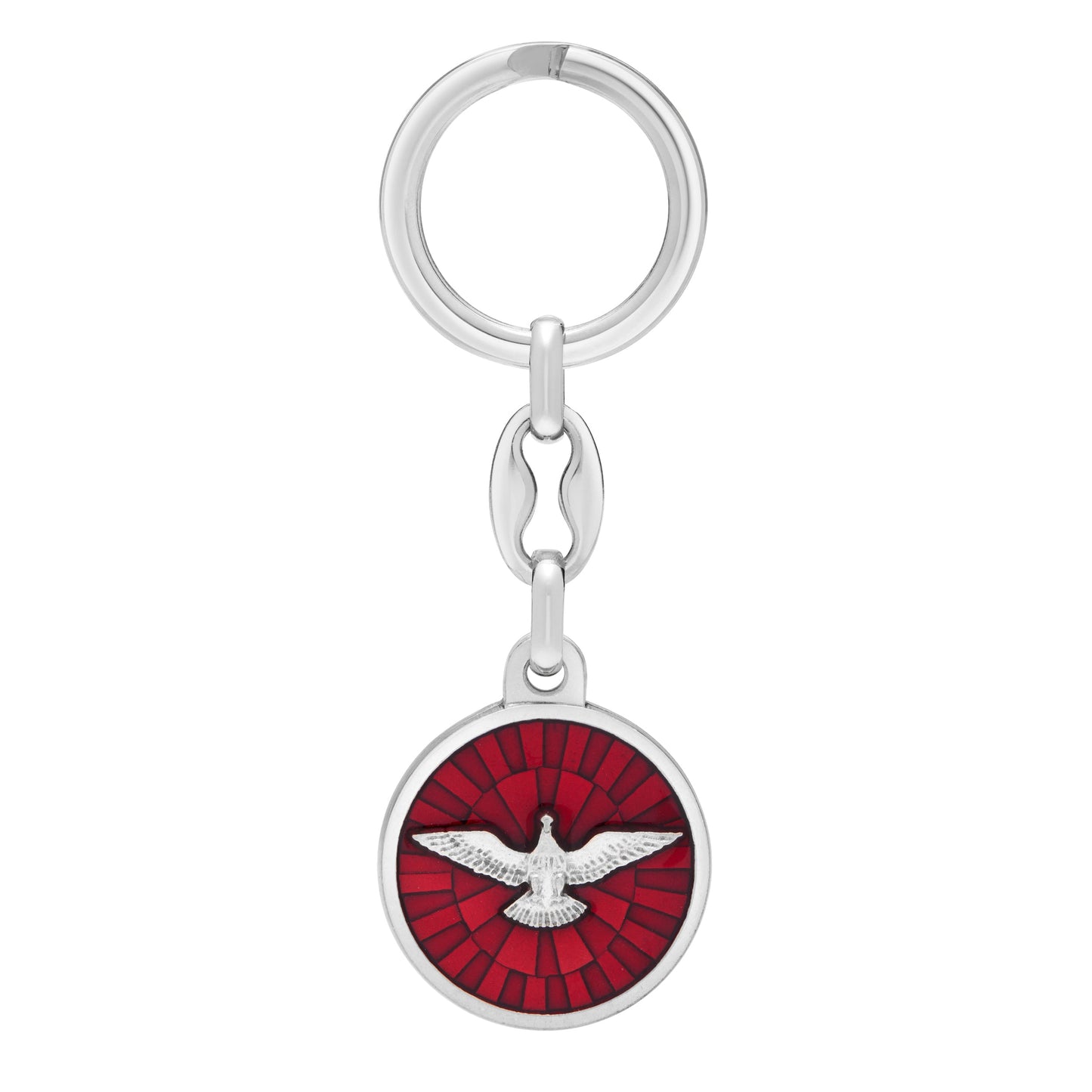 Portachiavi Rotondo in Metallo Smaltato Rosso Dello Spirito Santo