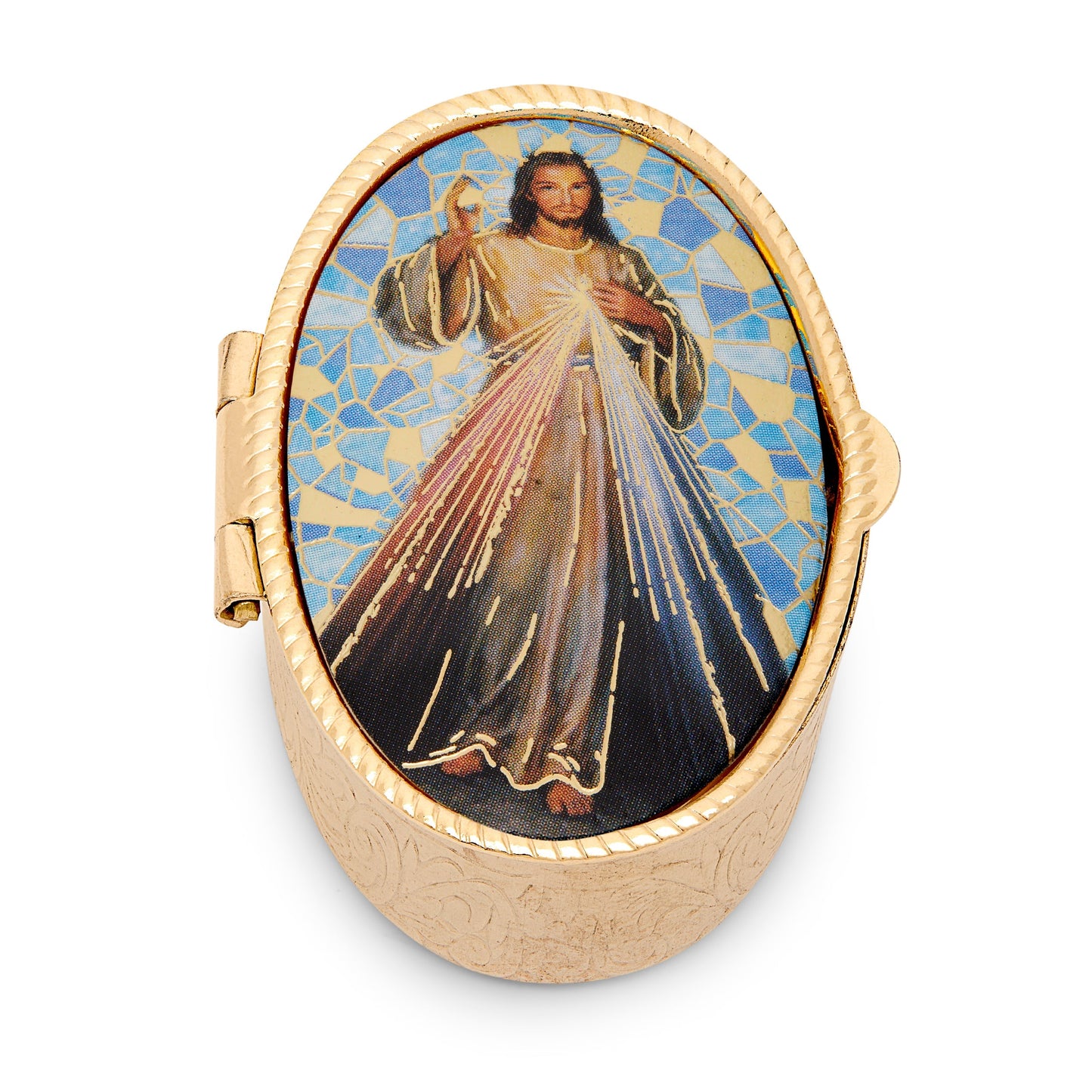 Portapillole Ovale Piccolo in Metallo Dorato Di Gesù Misericordioso