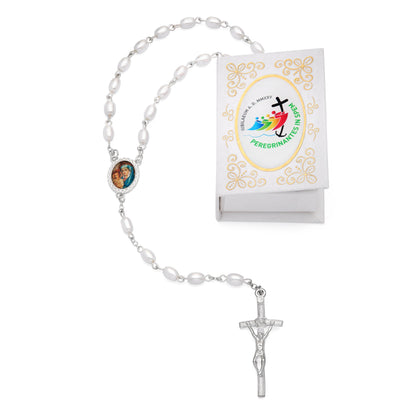 Portarosario Bianco del Giubileo 2025 con Rosario in Perla Sintetica