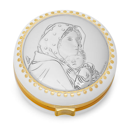 Portarosario Bianco Della Madonnina di Ferruzzi Con Placca in Metallo