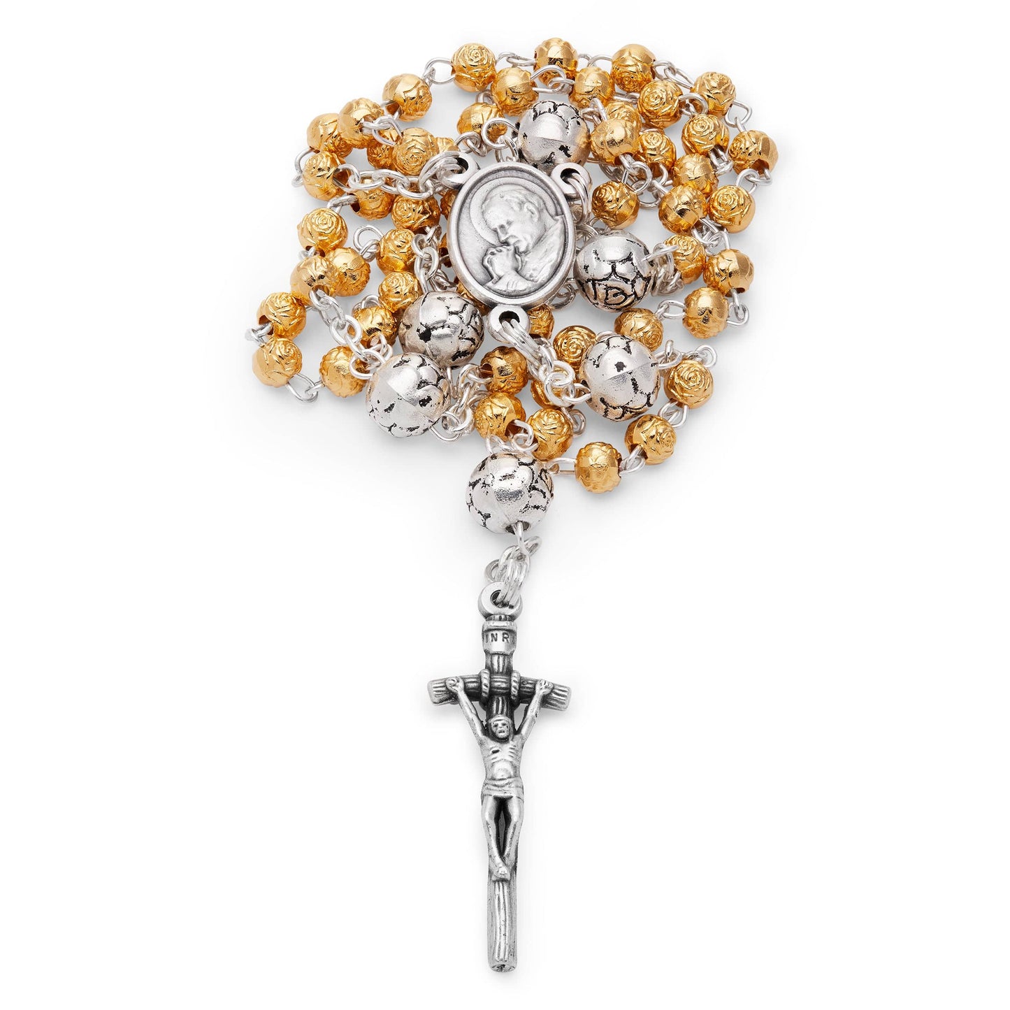 Portarosario Dorato Con Papa San Giovanni Paolo II E Rosario Con Grani a Forma Di Rosa