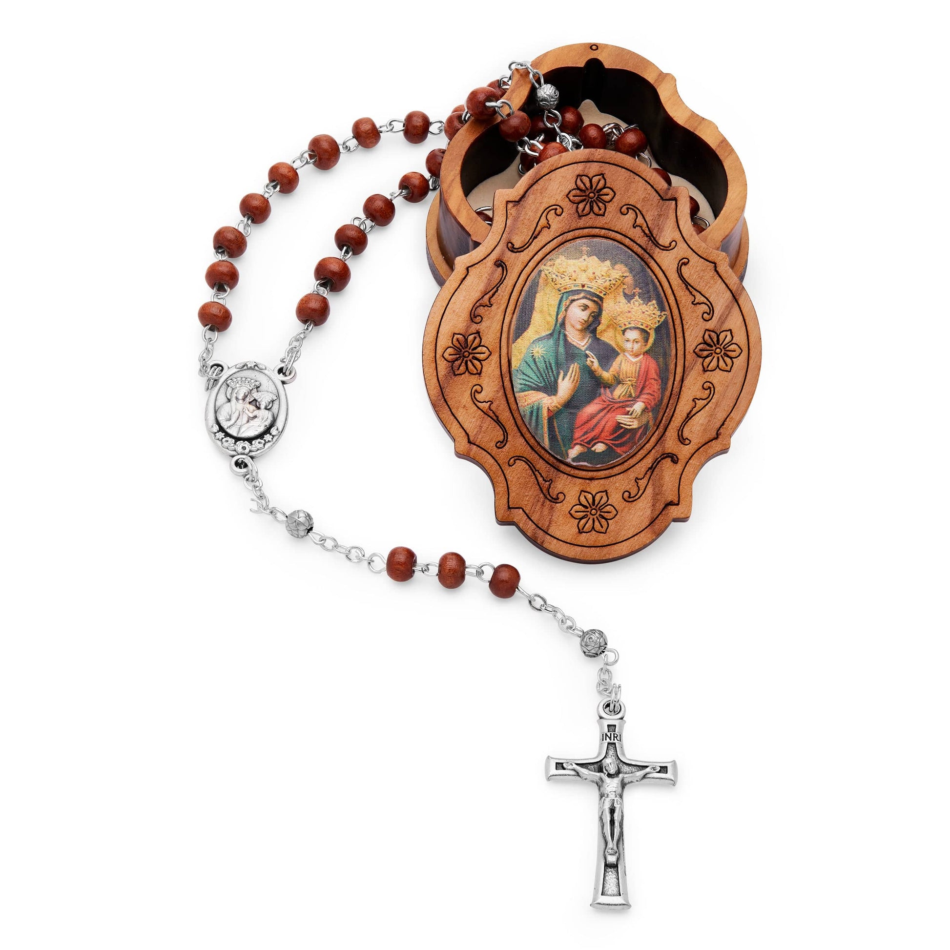 Portarosario in Legno D'ulivo Della Madonna della Salute Con Rosario in Legno