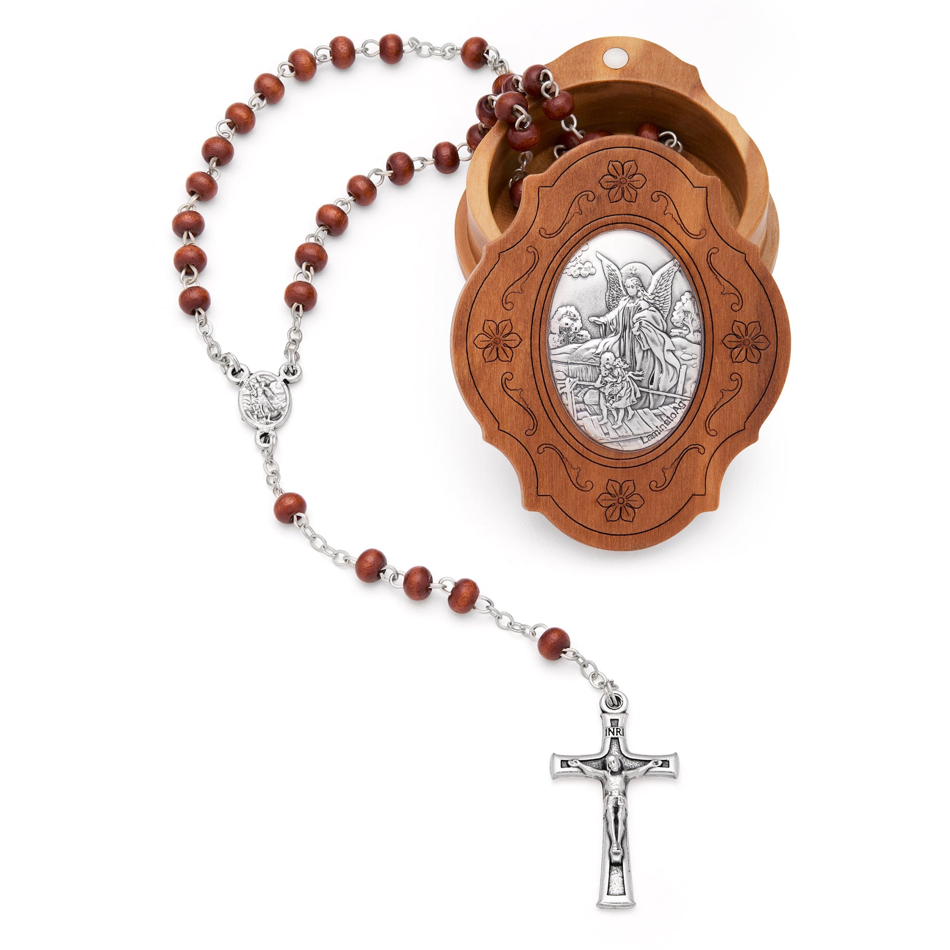 Portarosario in Legno D'ulivo Dell'Angelo Custode Con Rosario in Legno