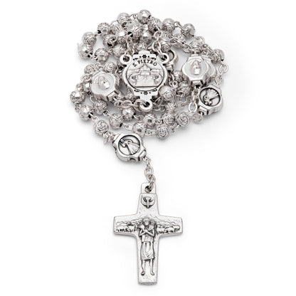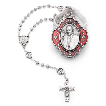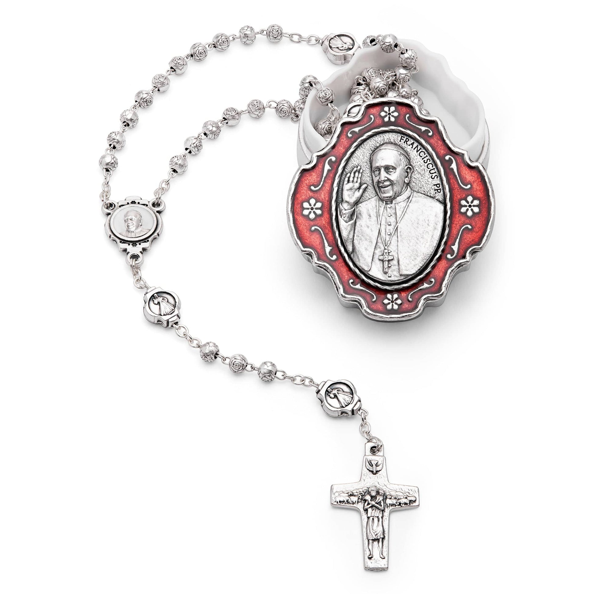 Portarosario Smaltato Rosso Di Papa Francesco Con Rosario Con Grani a Forma Di Rosa