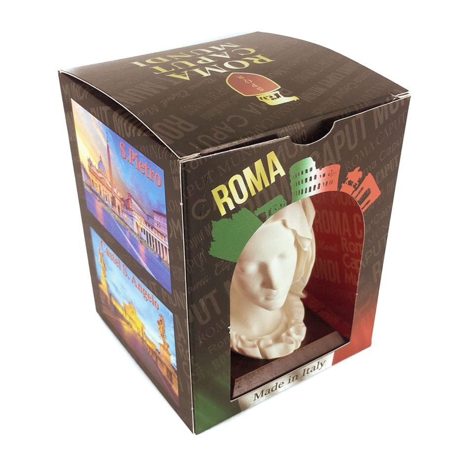 Volto della Pietà di Michelangelo in resina con base di legno, scatola.