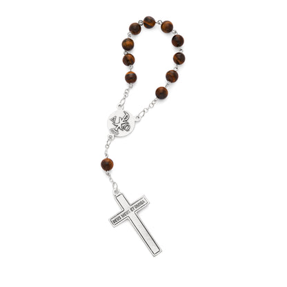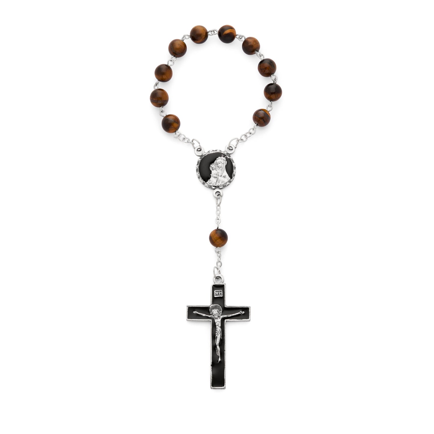 Rosario Decina con Grani in Occhio di Tigre con Crociera e Crocifisso Smaltati Marrone