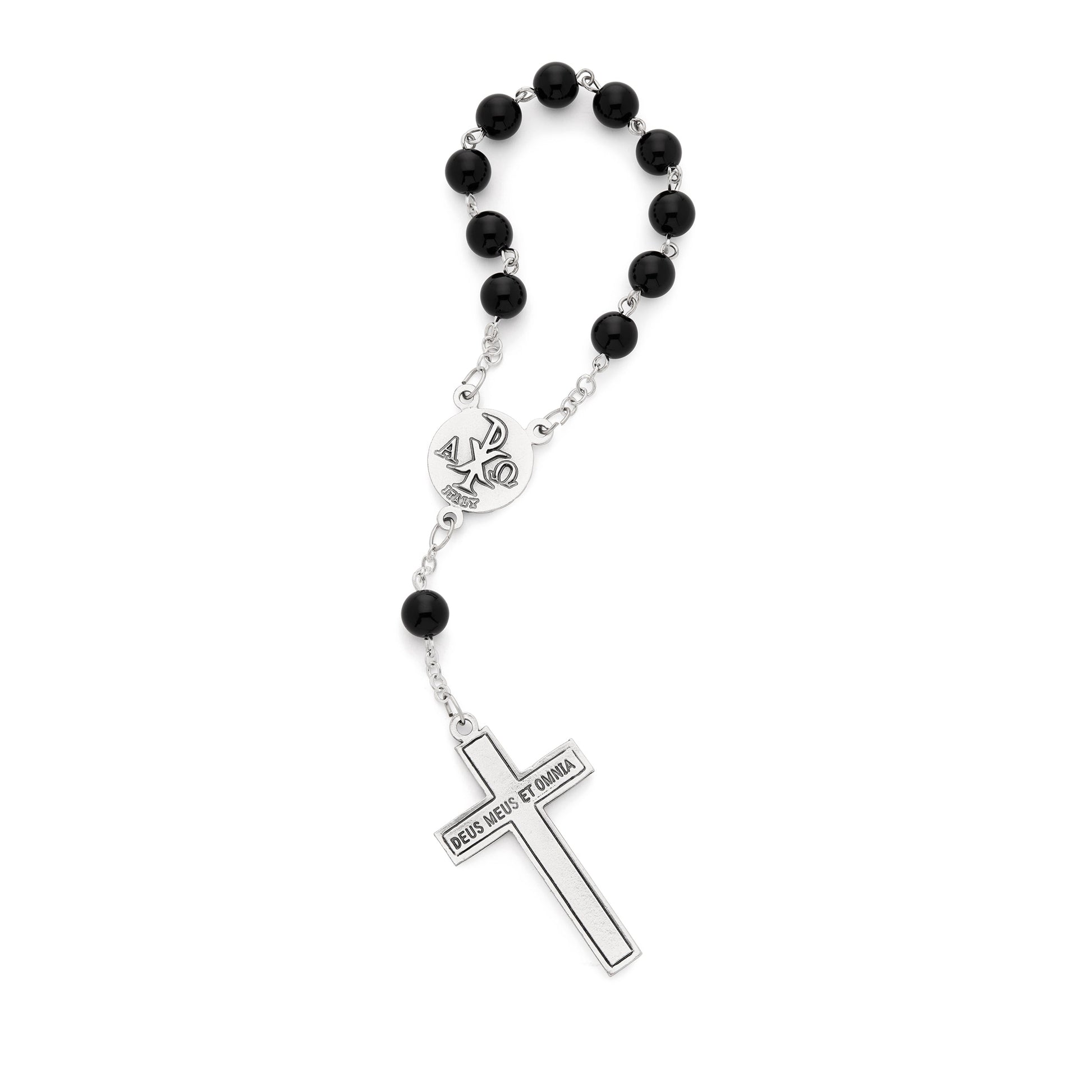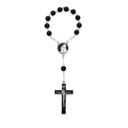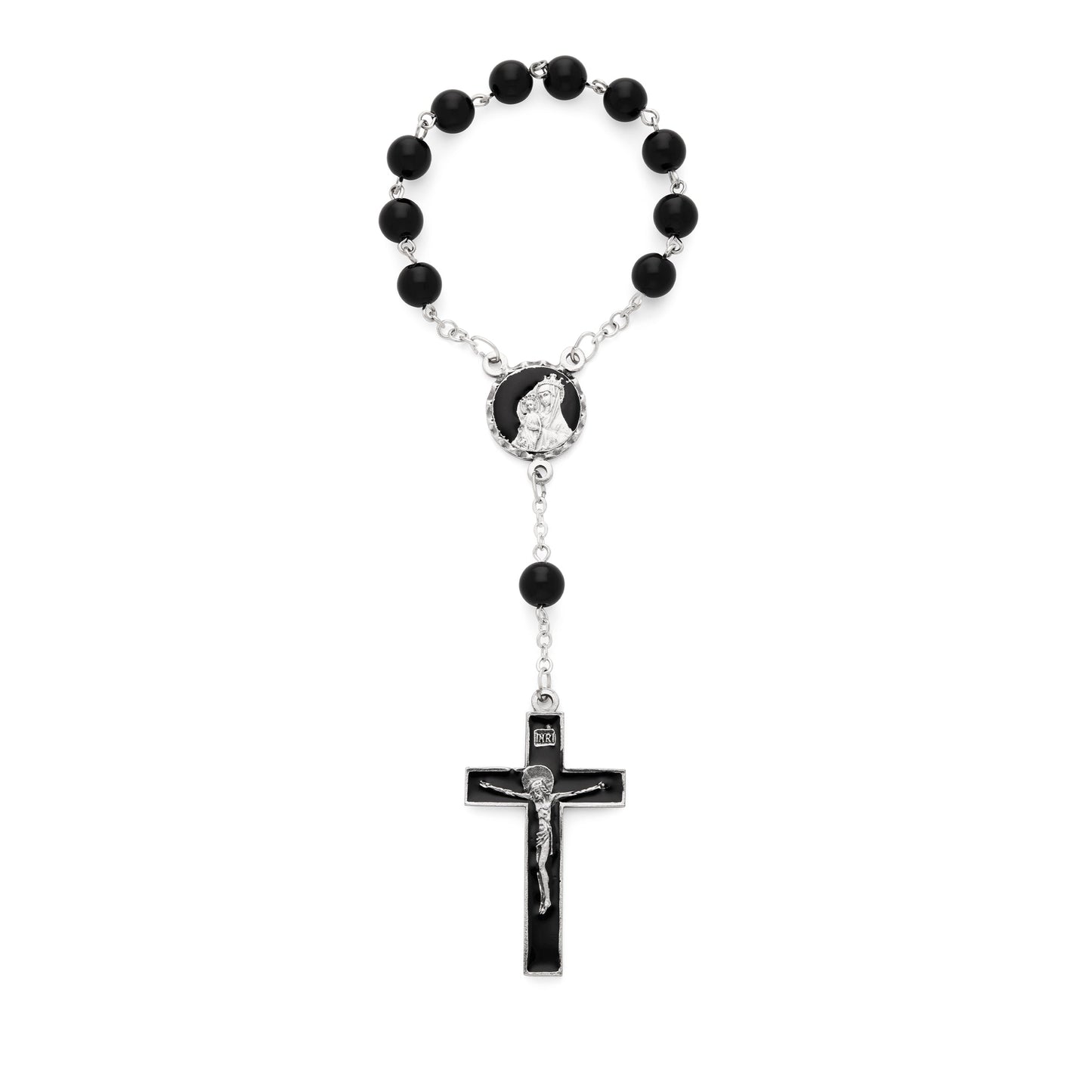 Rosario Decina con Grani in Onice Nero con Crociera e Crocifisso Smaltati Neri