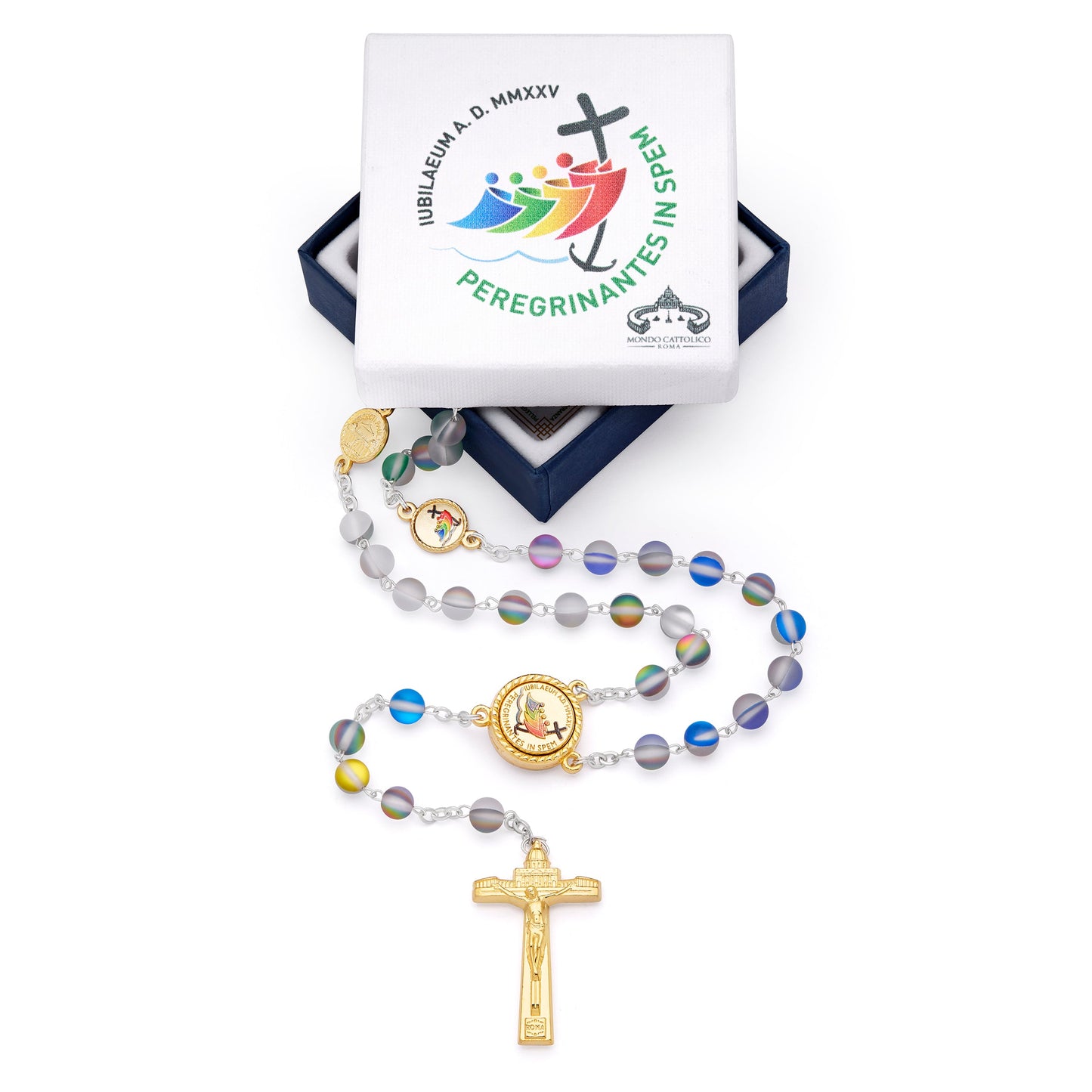Rosario del Giubileo 2025 con Grani Multicolor Opachi con Scatola Blu