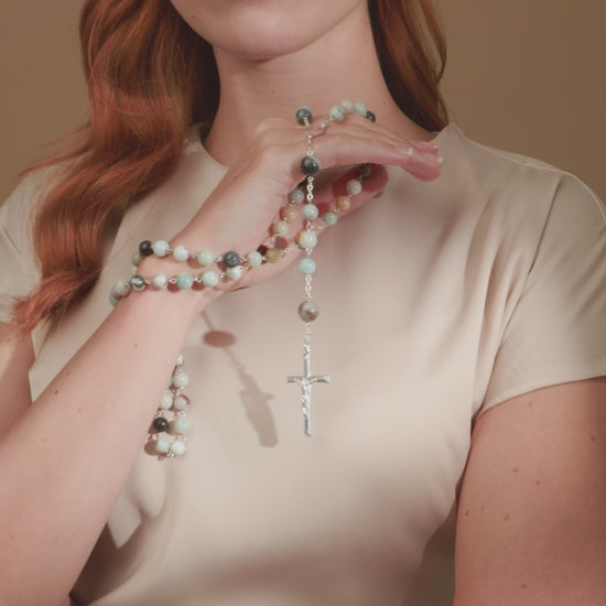 Rosario in Argento 925 con Grani in Amazzonite
