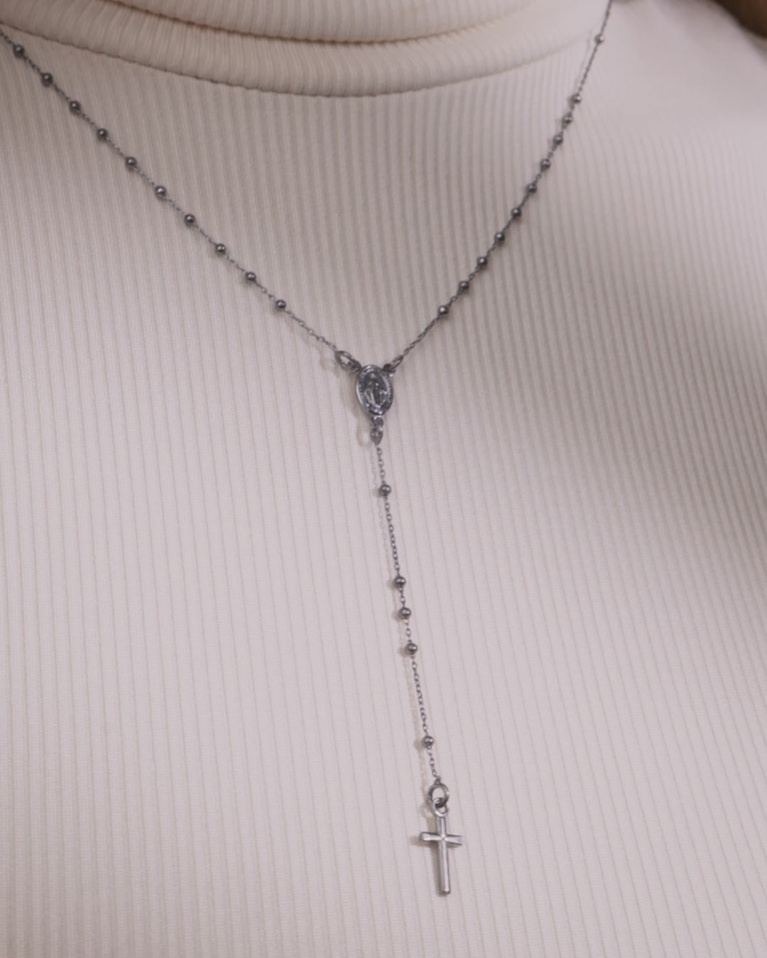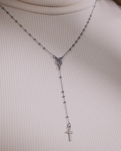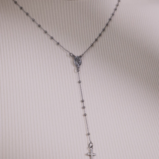 Rosario in Argento Placcato Rodio Nero con Grani Piccoli
