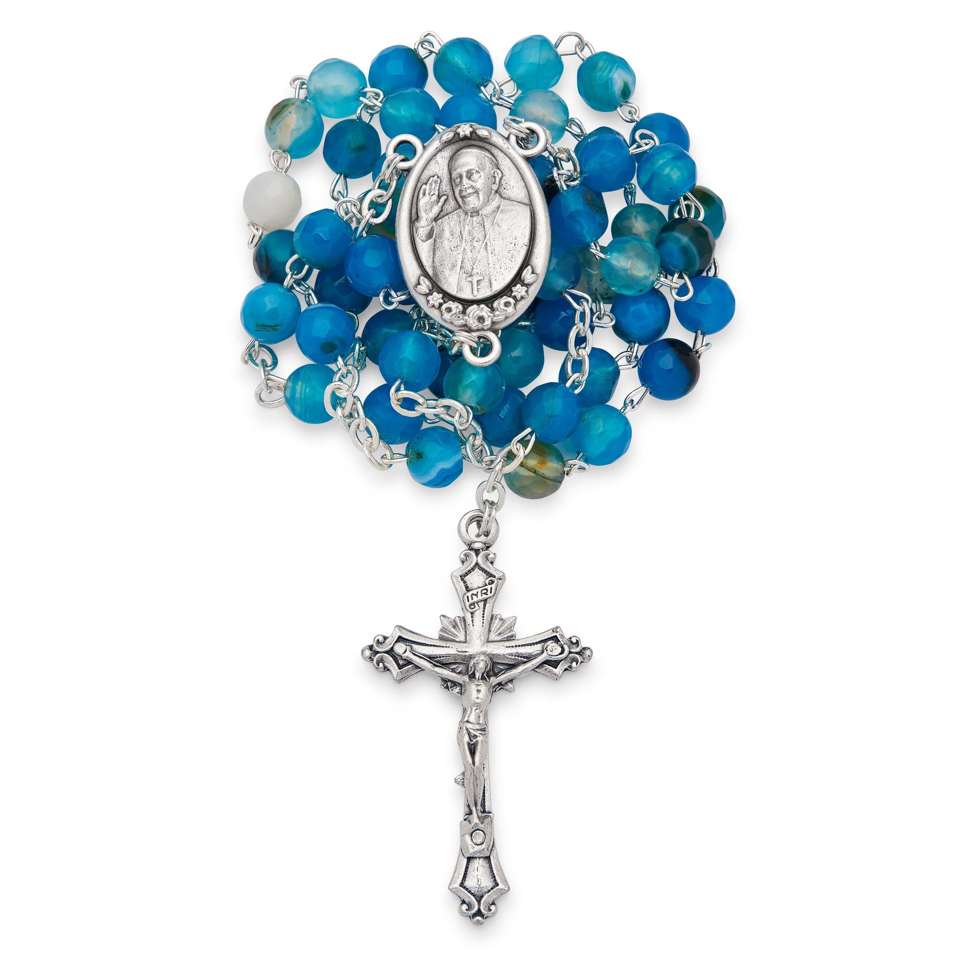 Rosario di Papa Francesco con Grani in Agata Blu
