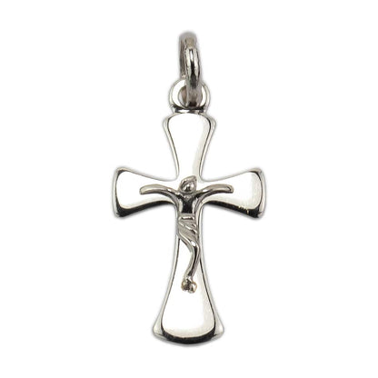 Croce Pendente Stondata Con Corpo Oro Bianco