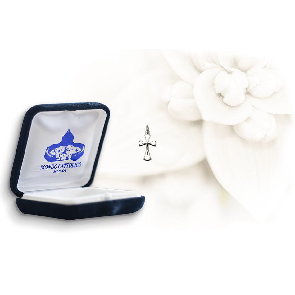 Croce Pendente Stondata con Corpo realizzata interamente in Oro Bianco 18kt.