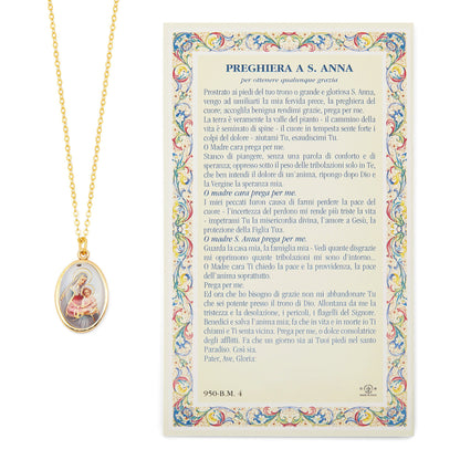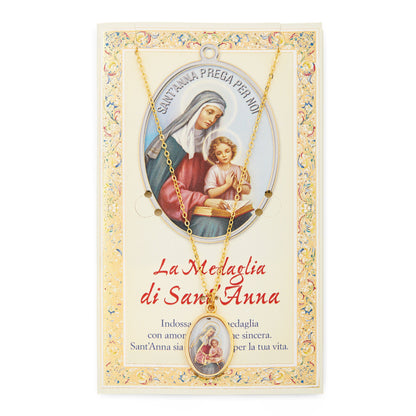 Santino e medaglia con catenina in metallo galavanizzato di Sant'Anna.