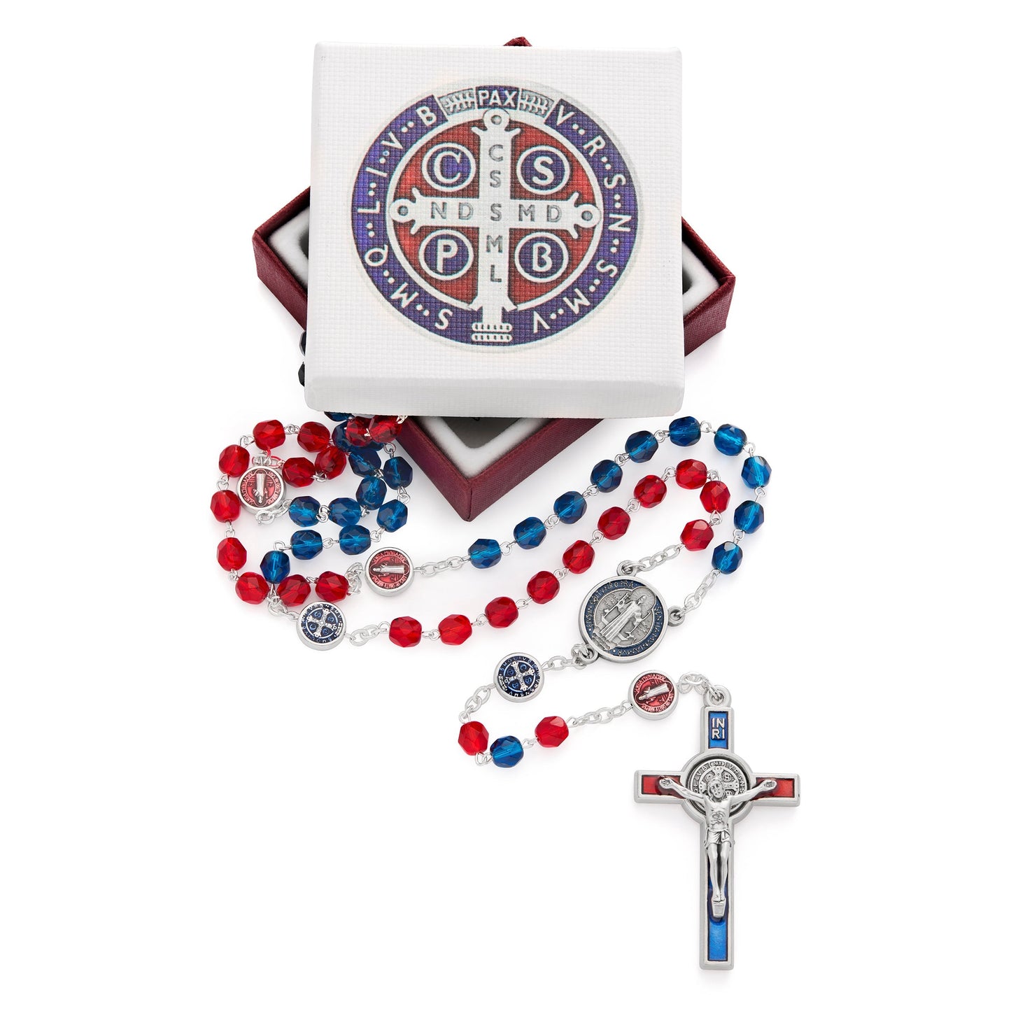 Rosario San Benedetto Grani in Cristallo Rossi e Blu