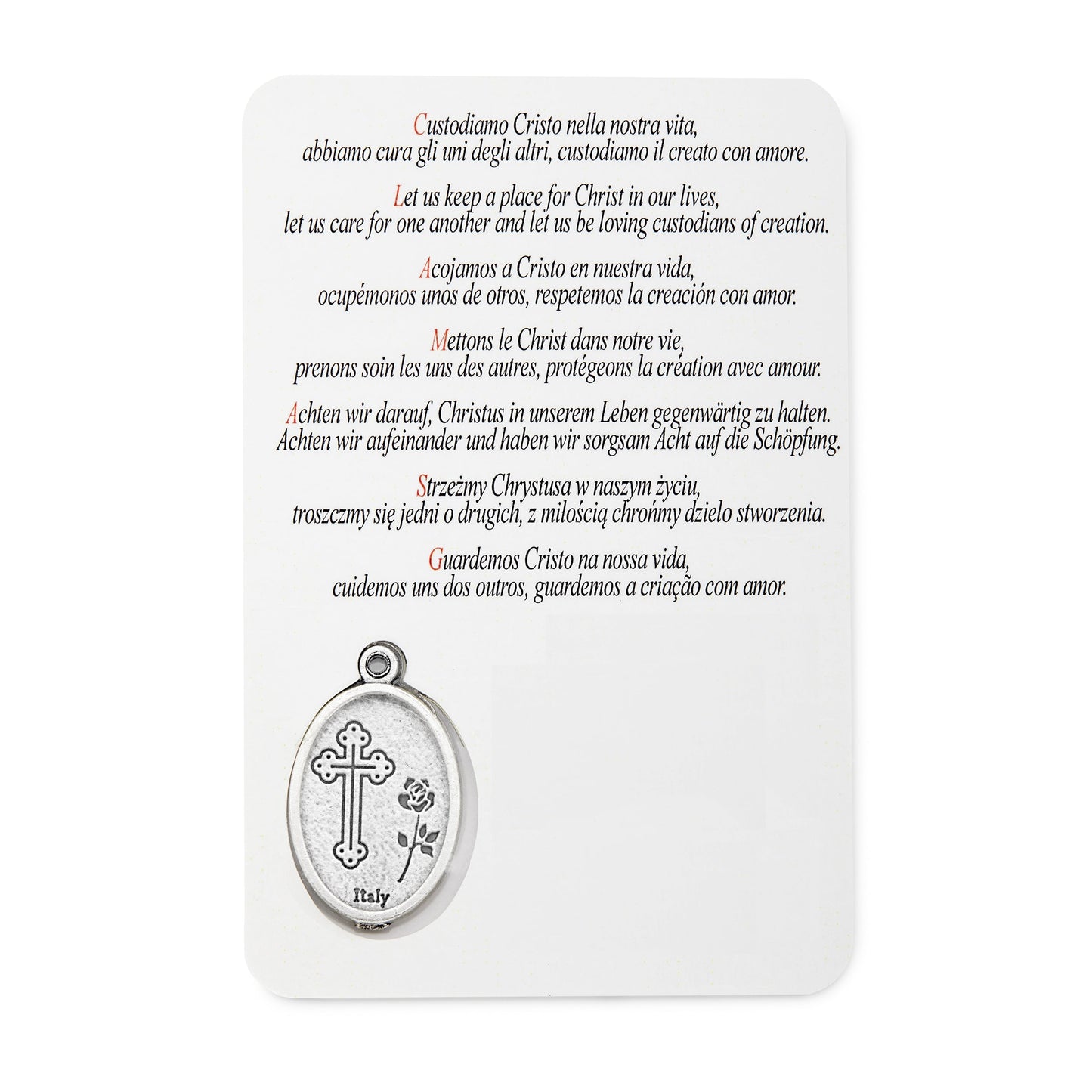 Questo santino plastificato di Papa Francesco è un modo comodo e durevole per mostrare devozione e fede. Realizzato con materiali di alta qualità, questo santino è perfetto da portare in un portafoglio o in borsa, ed è un utile promemoria degli insegnamenti del Papa e del messaggio di amore e compassione.