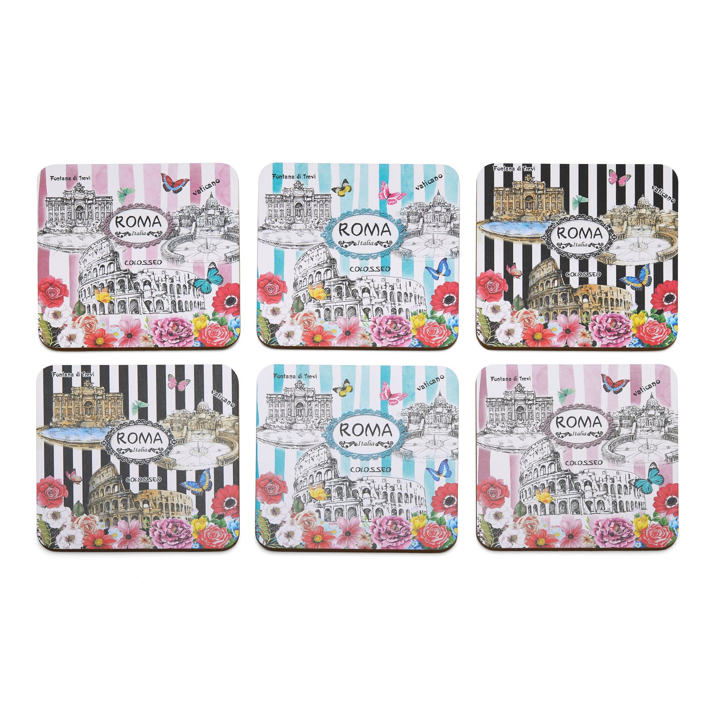 Set di Sottobicchieri con Monumenti di Roma e Fiori