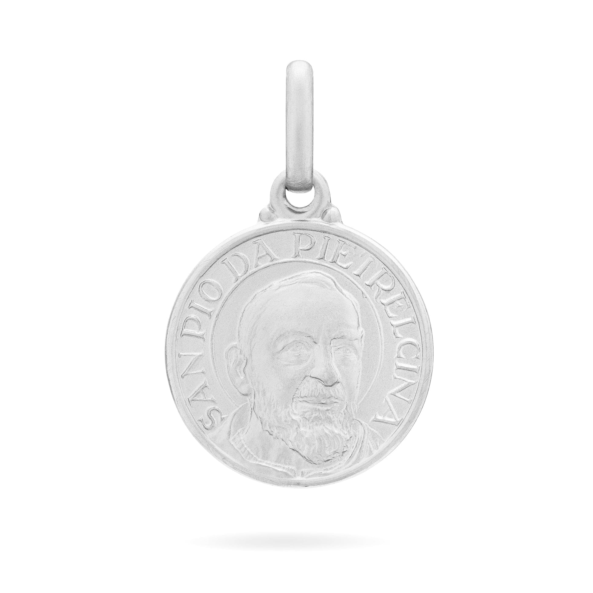 Medaglia in Argento 925 di San Padre Pio da Petrelcina, all'anagrafe Francesco Forgione. Nel 1916 arriva a San Giovanni Rotondo, sul Gargano, da dove non si sposterà più fino alla morte attirando folle di pellegrini e fedeli da ogni parte d'Italia e dal mondo che andavano da lui per ricevere conforto e confessarsi.
