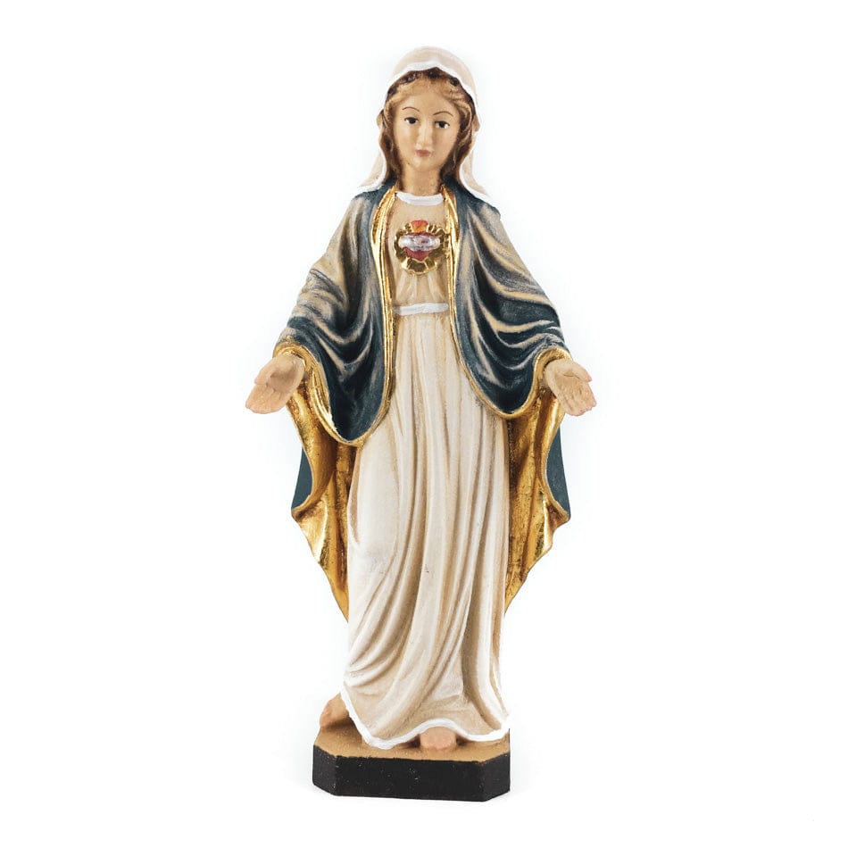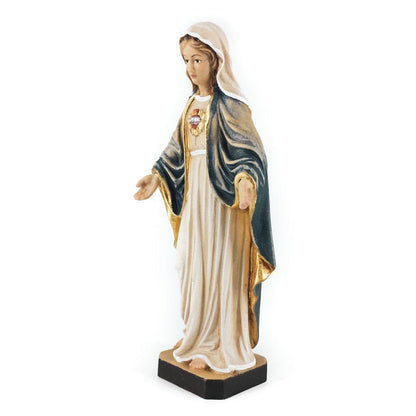 Statua in Legno Del Cuore Immacolato di Maria Con Manto Blu