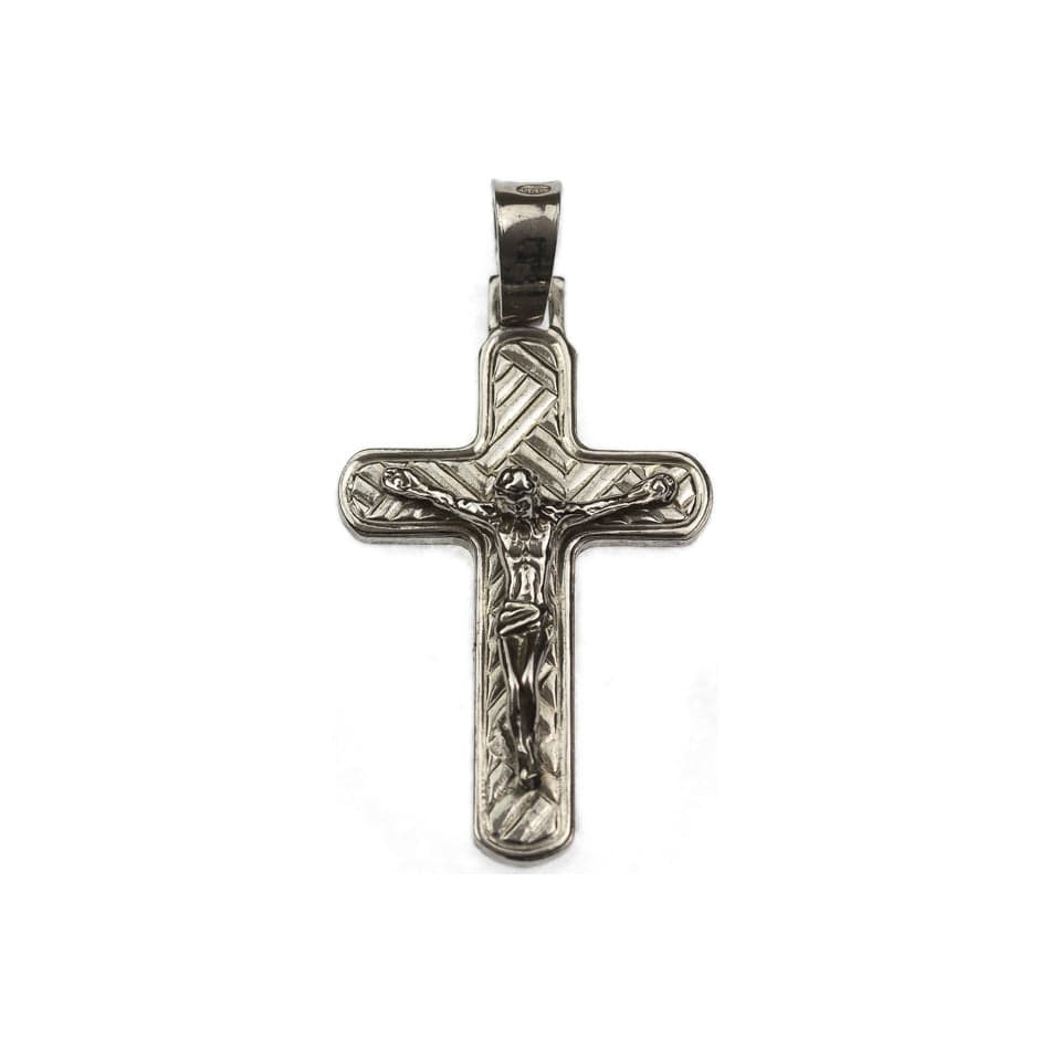 Ciondolo Crocifisso con Linee Oblique in Argento