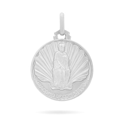 La medaglia in argento sterling di San Giacomo di Compostela, uno dei 12 apostoli di Gesù, è comunemente raffigurata con in mano un bastone con una zucca. Gli attributi secondari possono essere una borsa da pellegrino o un abito da pellegrino, un berretto e una conchiglia. Patrono dei pellegrini.