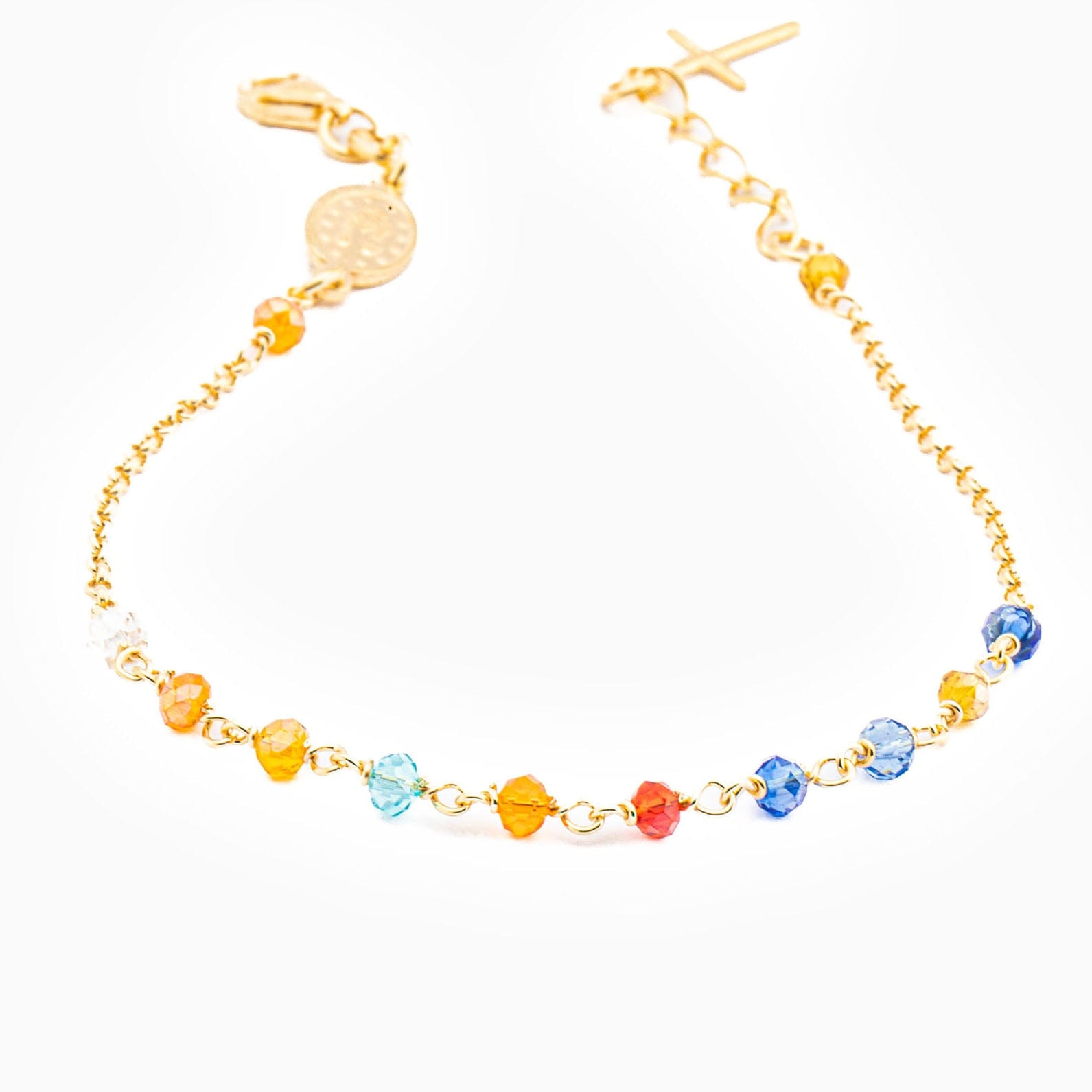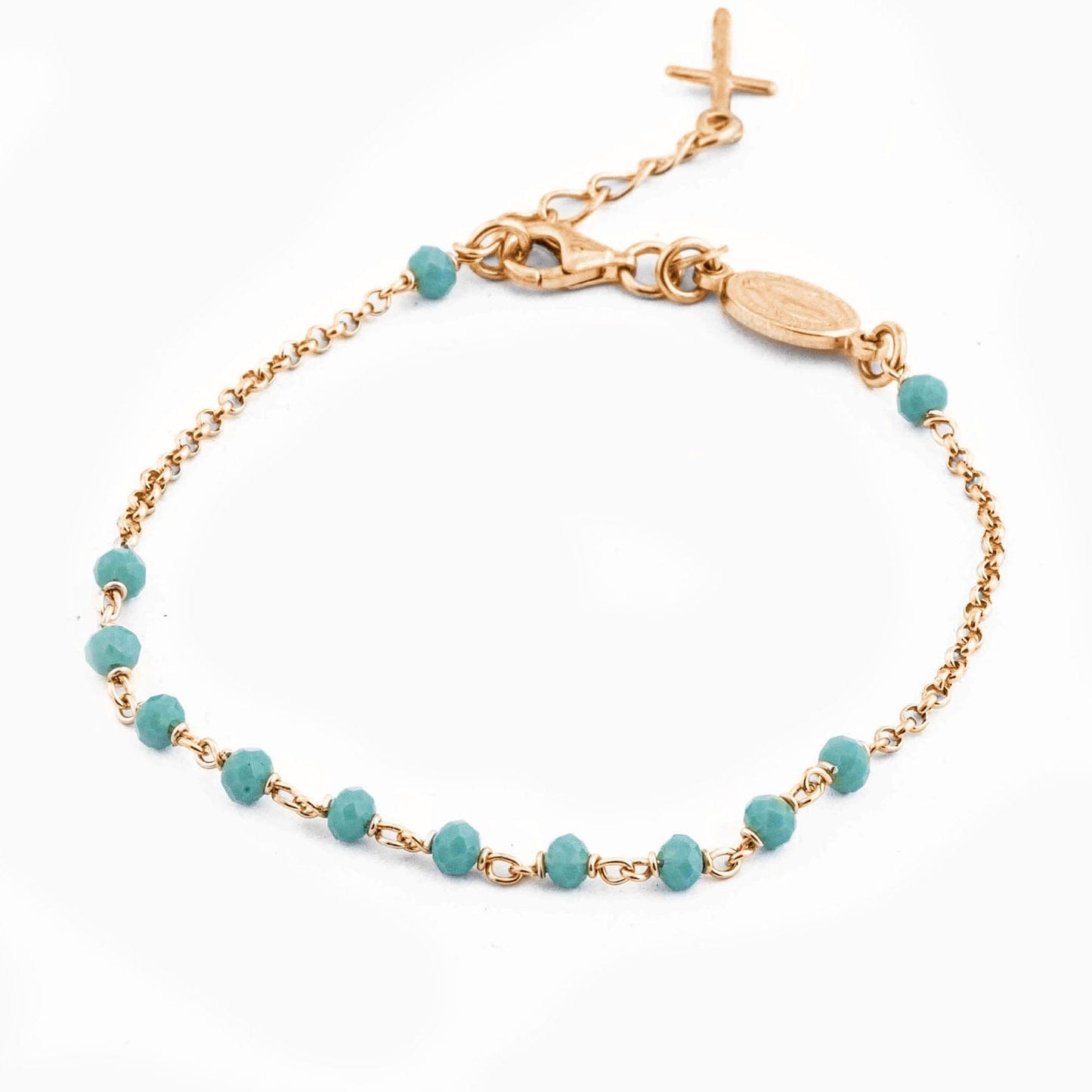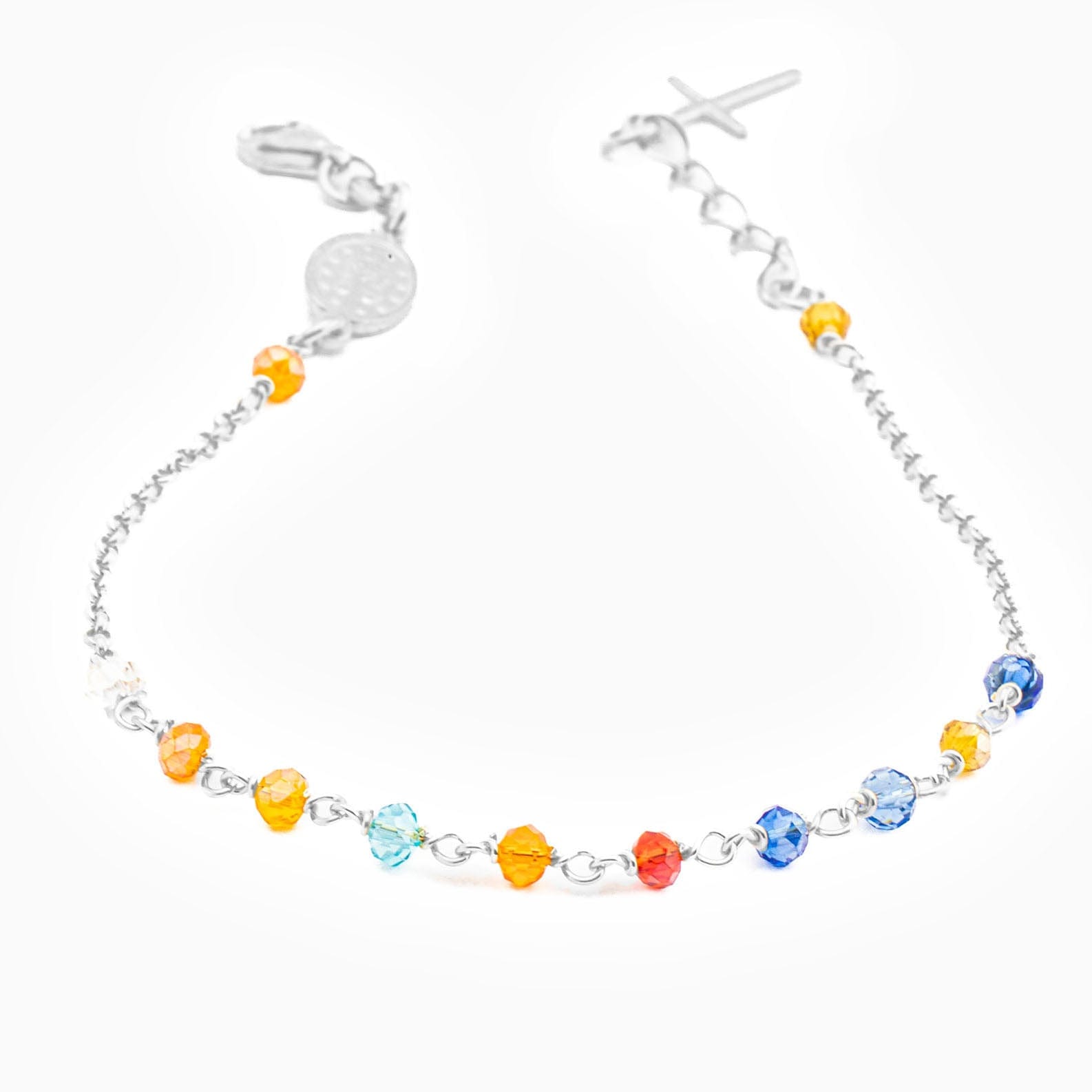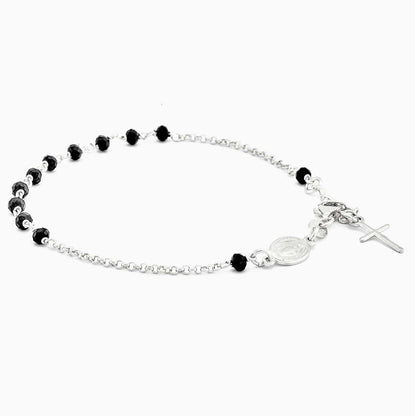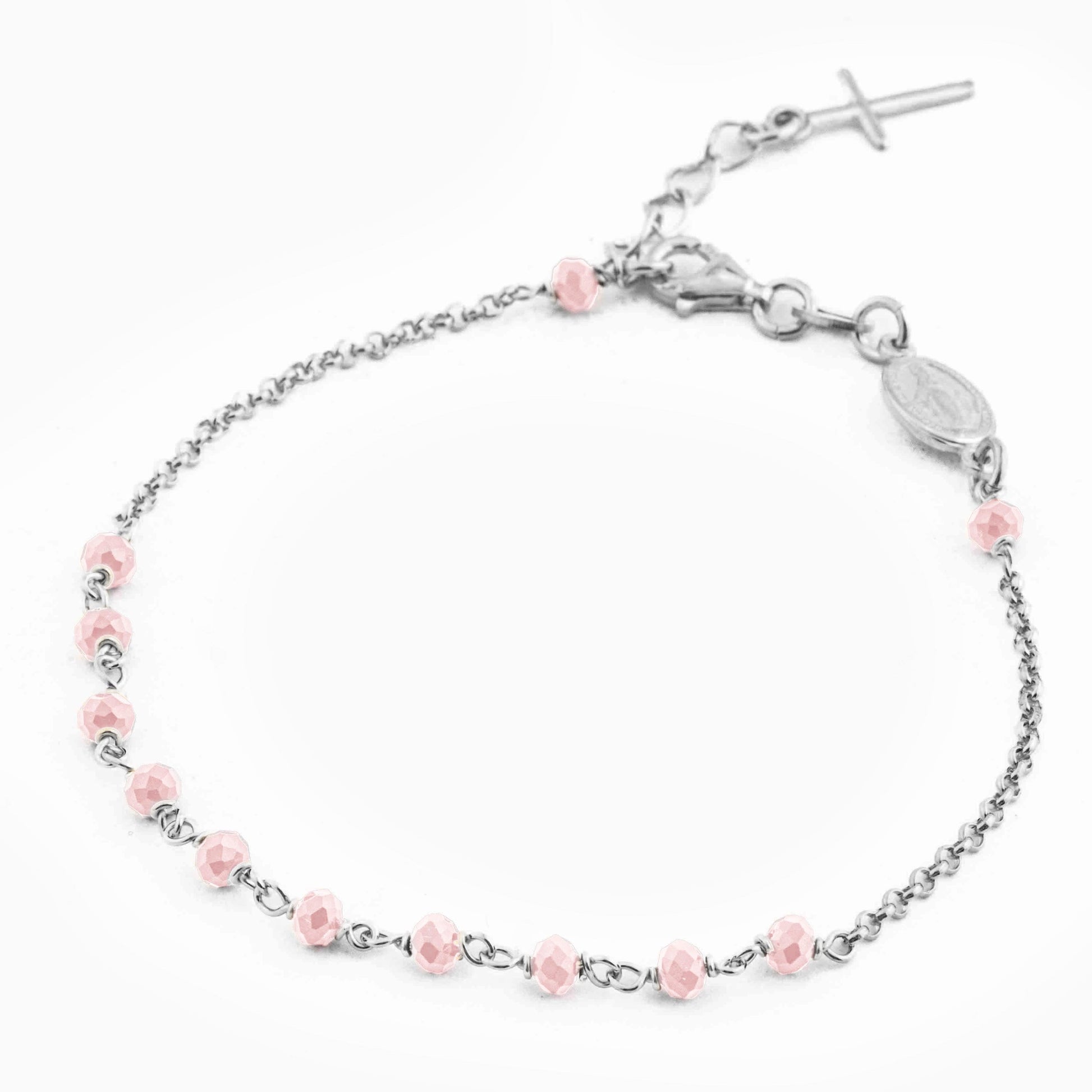 Rosario bracciale in argento, 10 grani di cristallo sfaccettati, medaglia della Vergine Miracolosa.