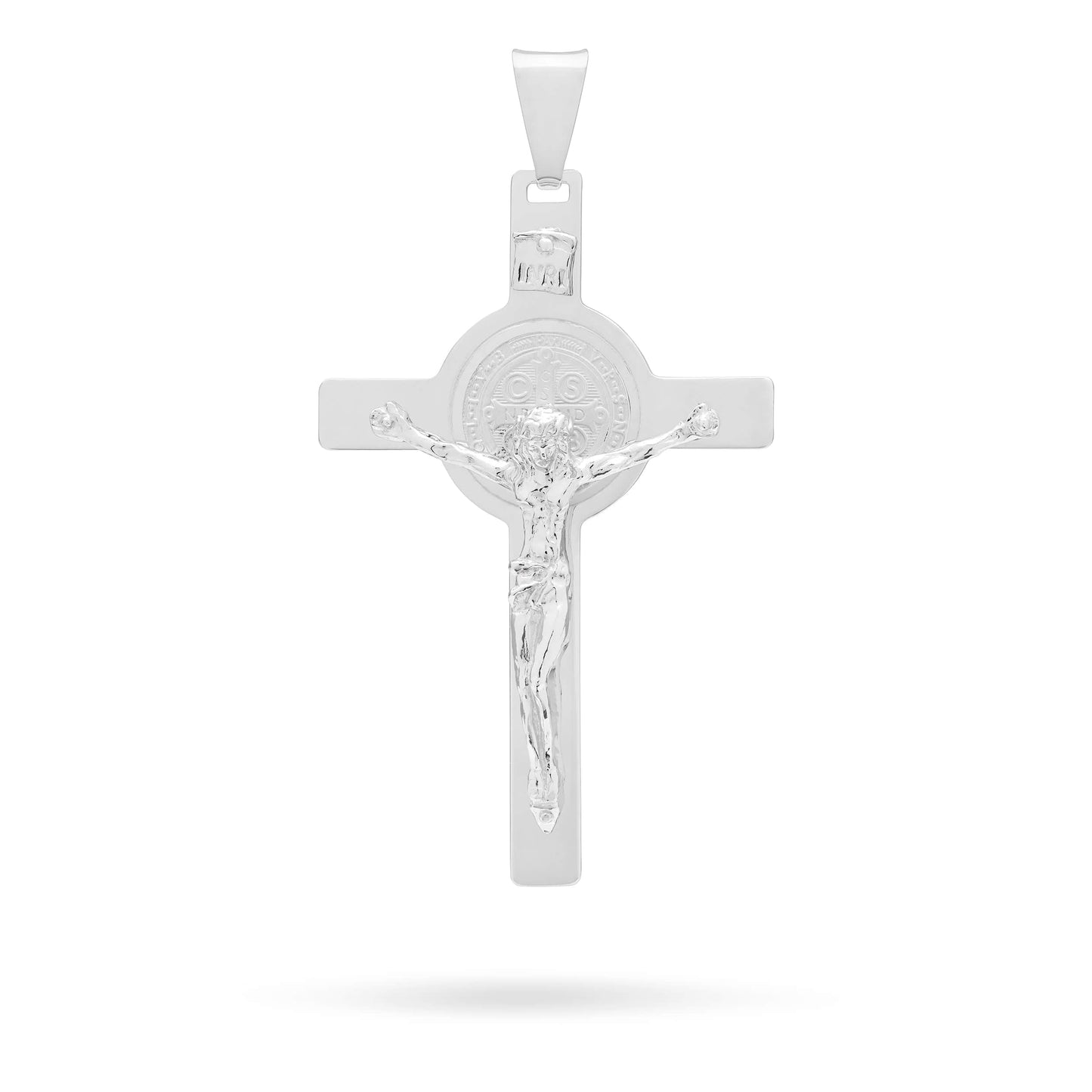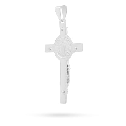 Ciondolo crocifisso di San Benedetto in argento 925.