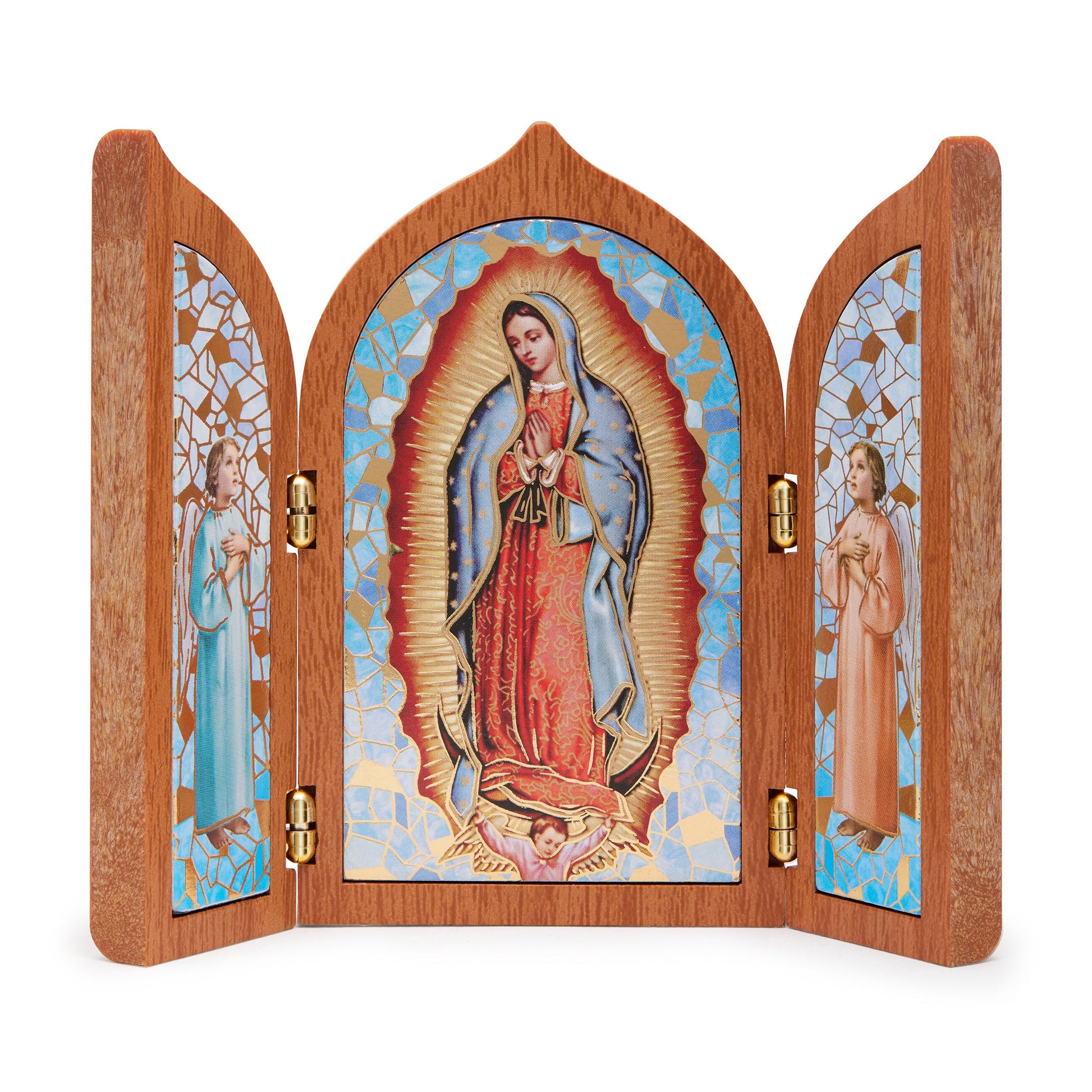 Trittico in Legno Con Nostra Signora Di Guadalupe Ed Angeli