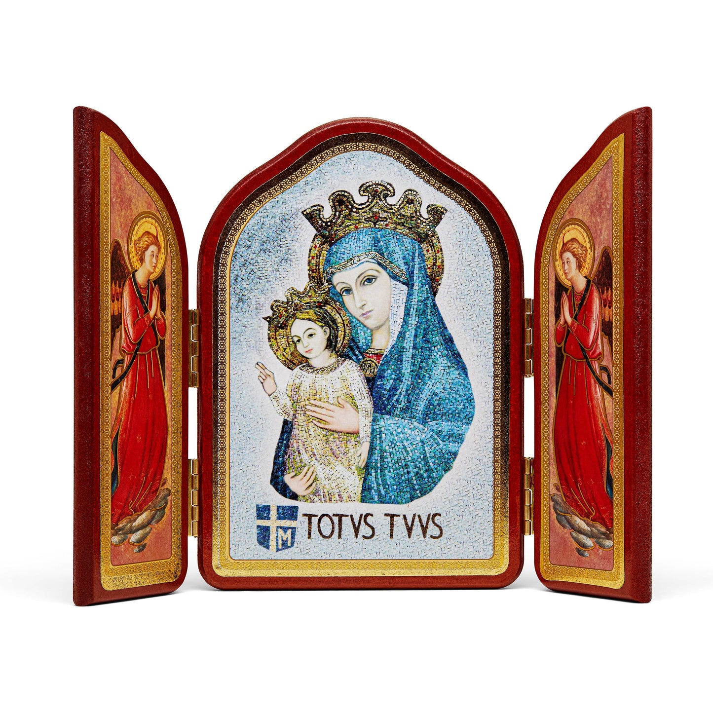 Trittico in Legno Rosso Con Mater Ecclesiae E Angeli
