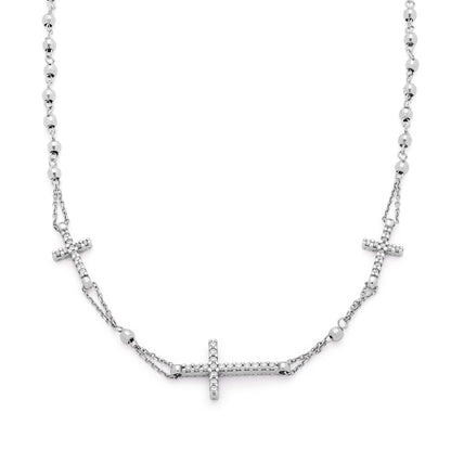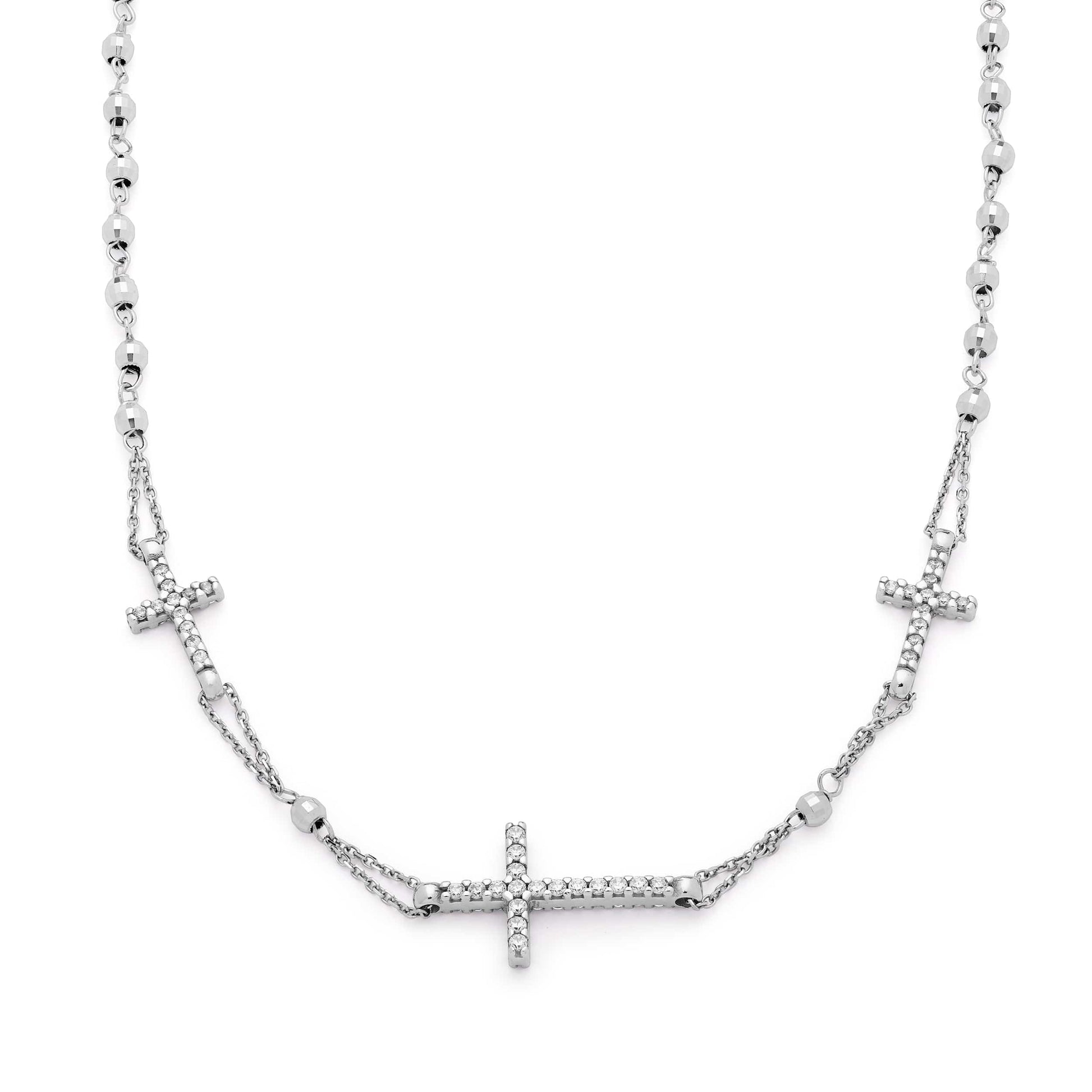 Rosario Girocollo Sfaccettato Oro Bianco Tre Croci